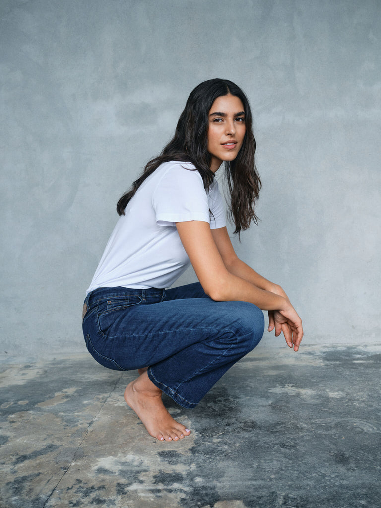 Slim fit jeans er designet til at omfavne og fremhæve dine kurver med en tætsiddende silhuet. De smyger sig til kroppen uden at føles ukomfortable, hvilket gør dem til et oplagt valg for dig, der ønsker at kombinere komfort med stil. Vores slim fit jeans fås med forskellige taljehøjder - fra høj talje, der giver ekstra støtte og skaber en lang, elegant silhuet, lav talje, der tilfører et mere afslappet, moderne udtryk til middelhøj middelhøj talje, der er et klassisk valg, der passer perfekt til alle kropstyper.