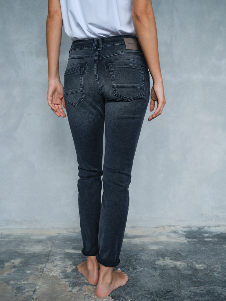 Boyfriend jeans tilbyder en let, løs og afslappet pasform med en middelhøj talje, der giver dig et ubesværet look. Deres afslappede stil giver dig mulighed for at justere, hvordan de skal sidde i taljen, hvilket gør dem alsidige og perfekte til alle typer outfits. Denne pasform har et mere maskulint udtryk og giver en mere afslappet attitude.