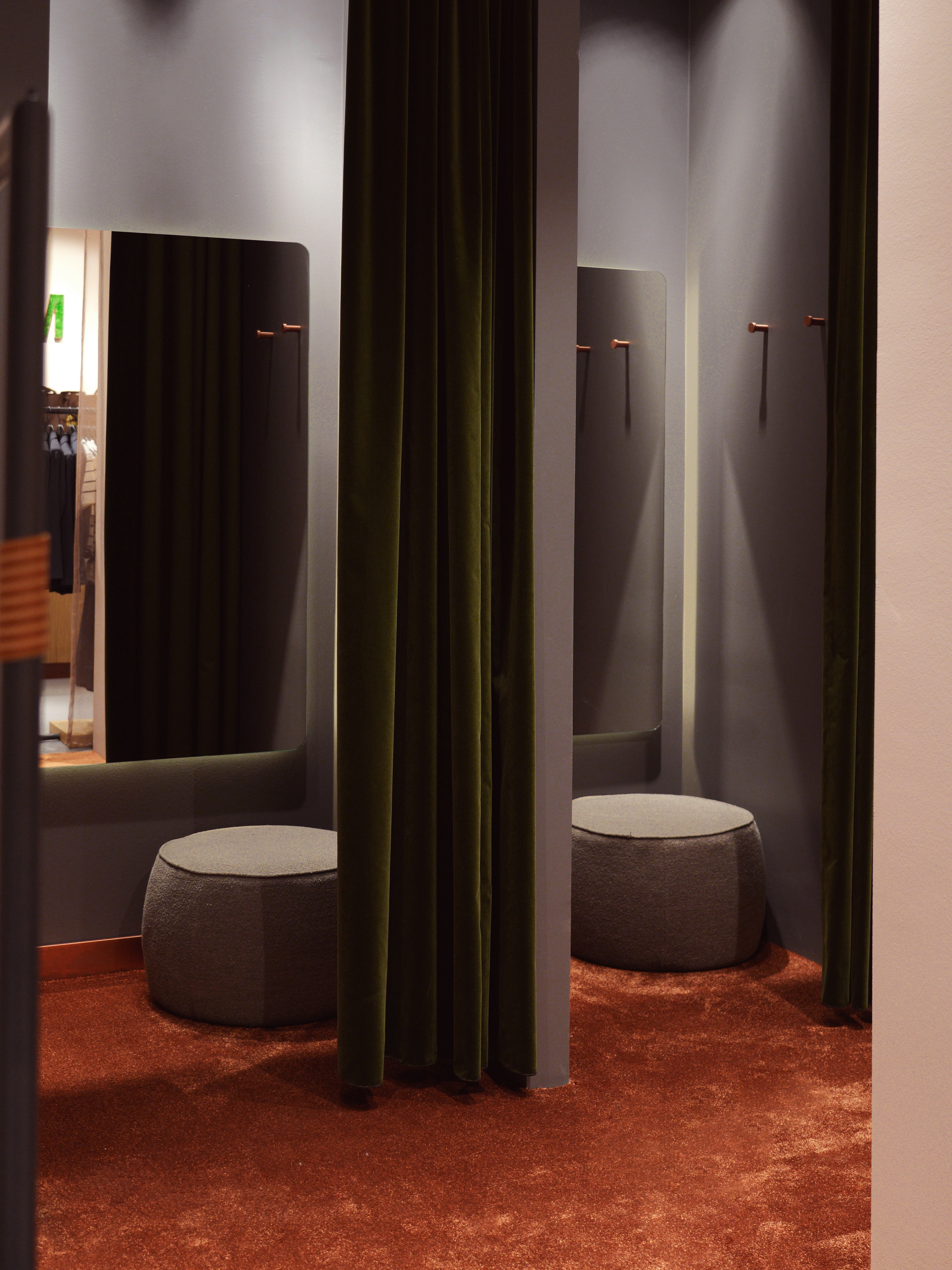 Butikken kombinerer smukke materialer som kobber, egetræ og andre naturlige elementer, og de rene linjer og ekstraordinære detaljer afspejler den samme håndværksmæssige dedikation, som kendetegner hvert enkelt MOS MOSH-design.