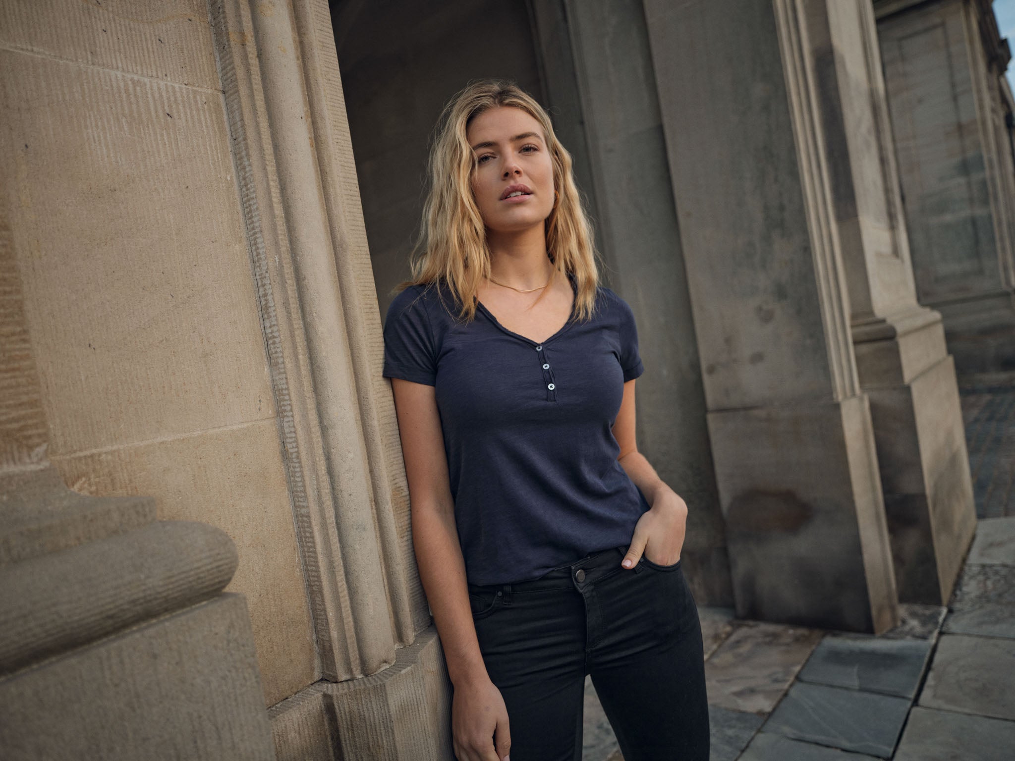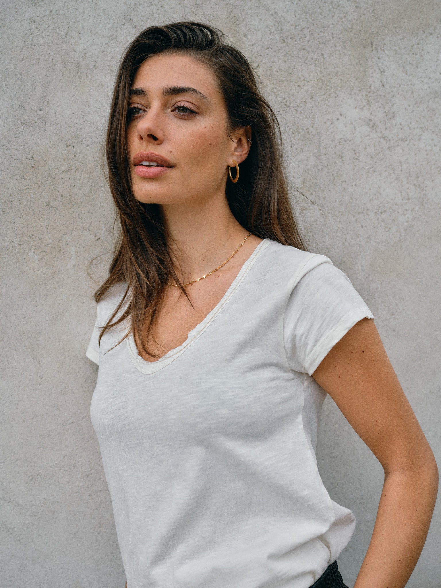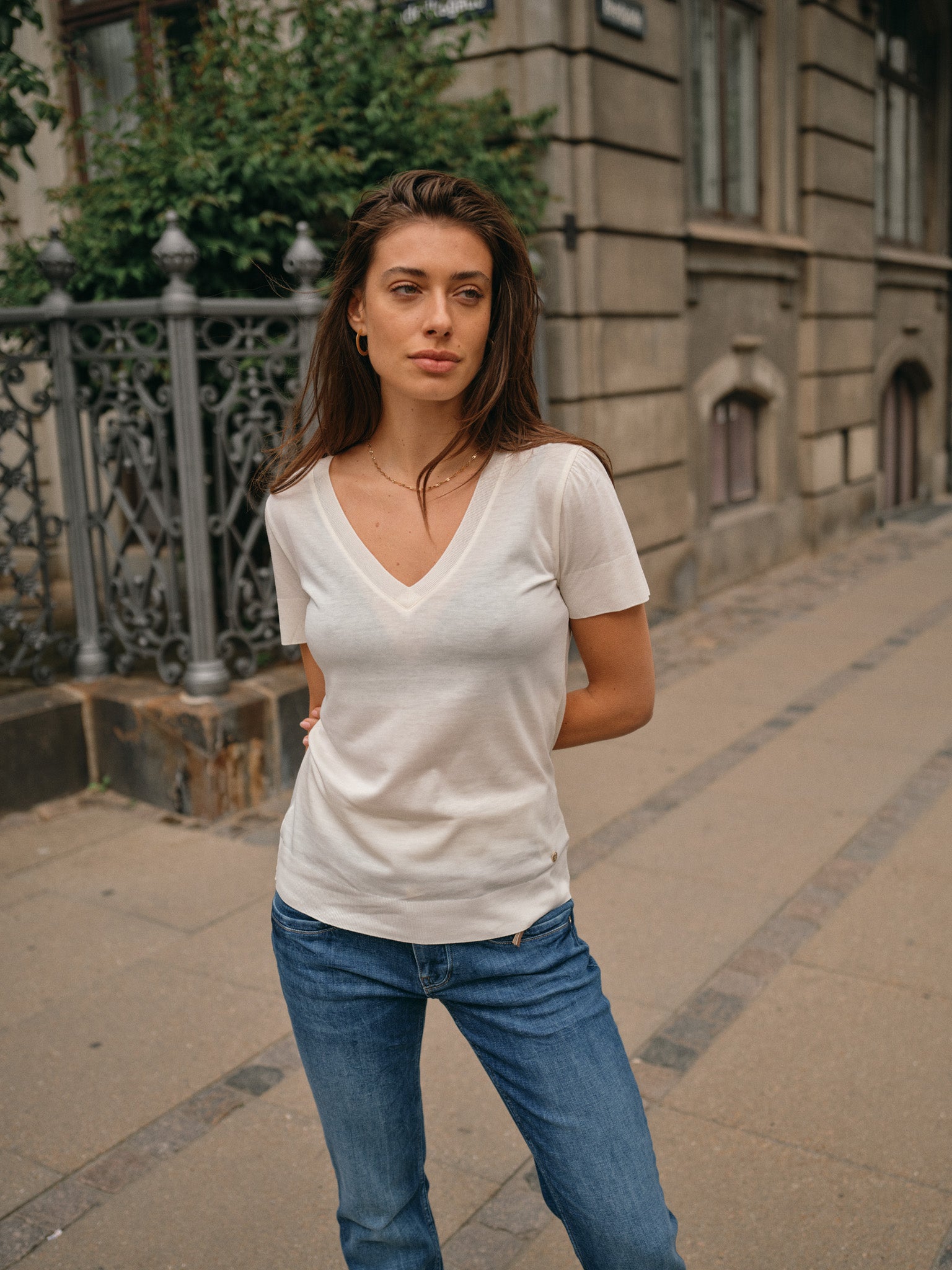 En t-shirt er et ikon i basisgarderoben og vil altid være et must i klassiske silhuetter, da de kan fuldende ethvert outfit. Det er et item du tager på, når du ikke har tid til at planlægge et outfit, da t-shirts bare virker hver gang.