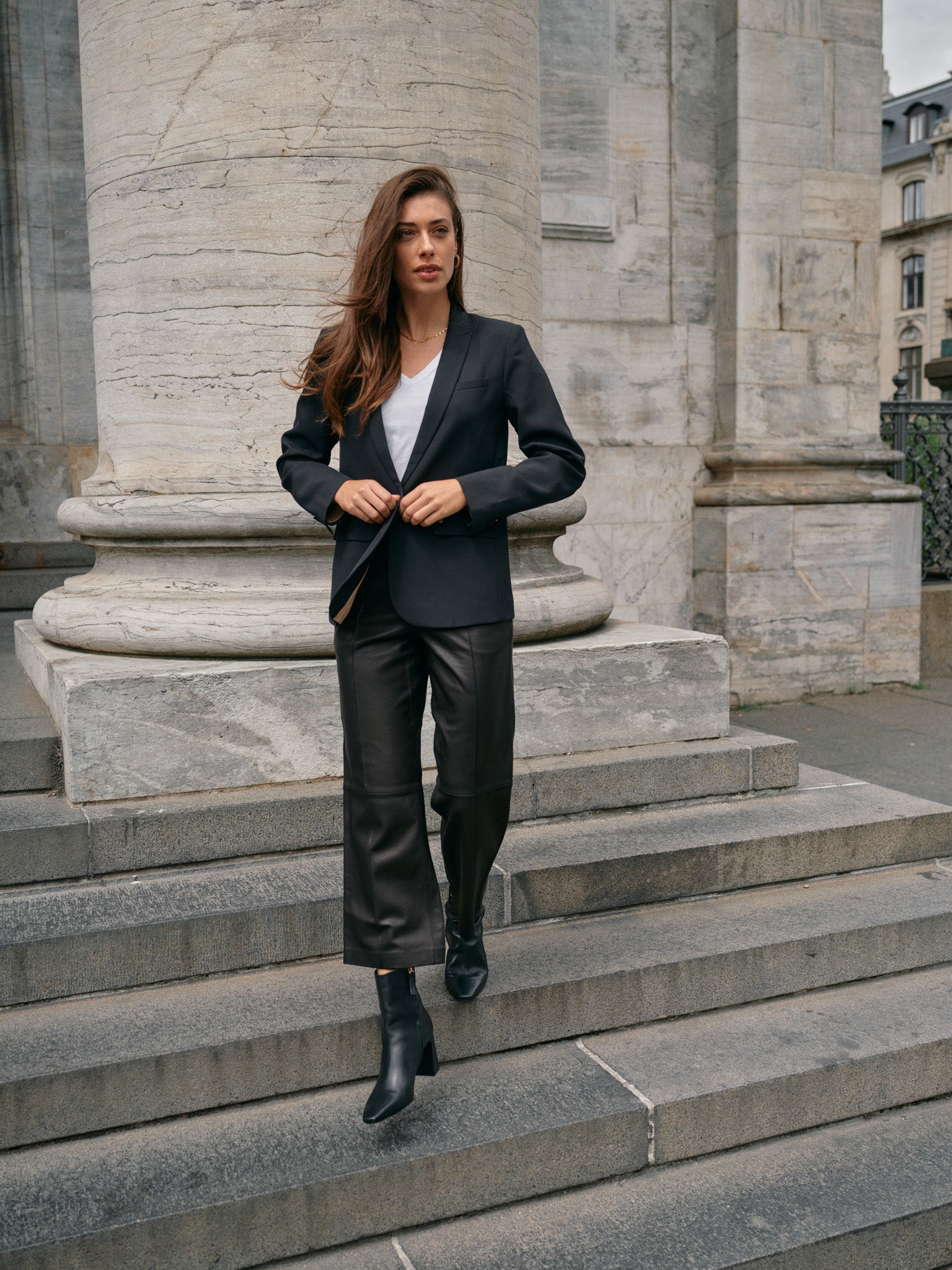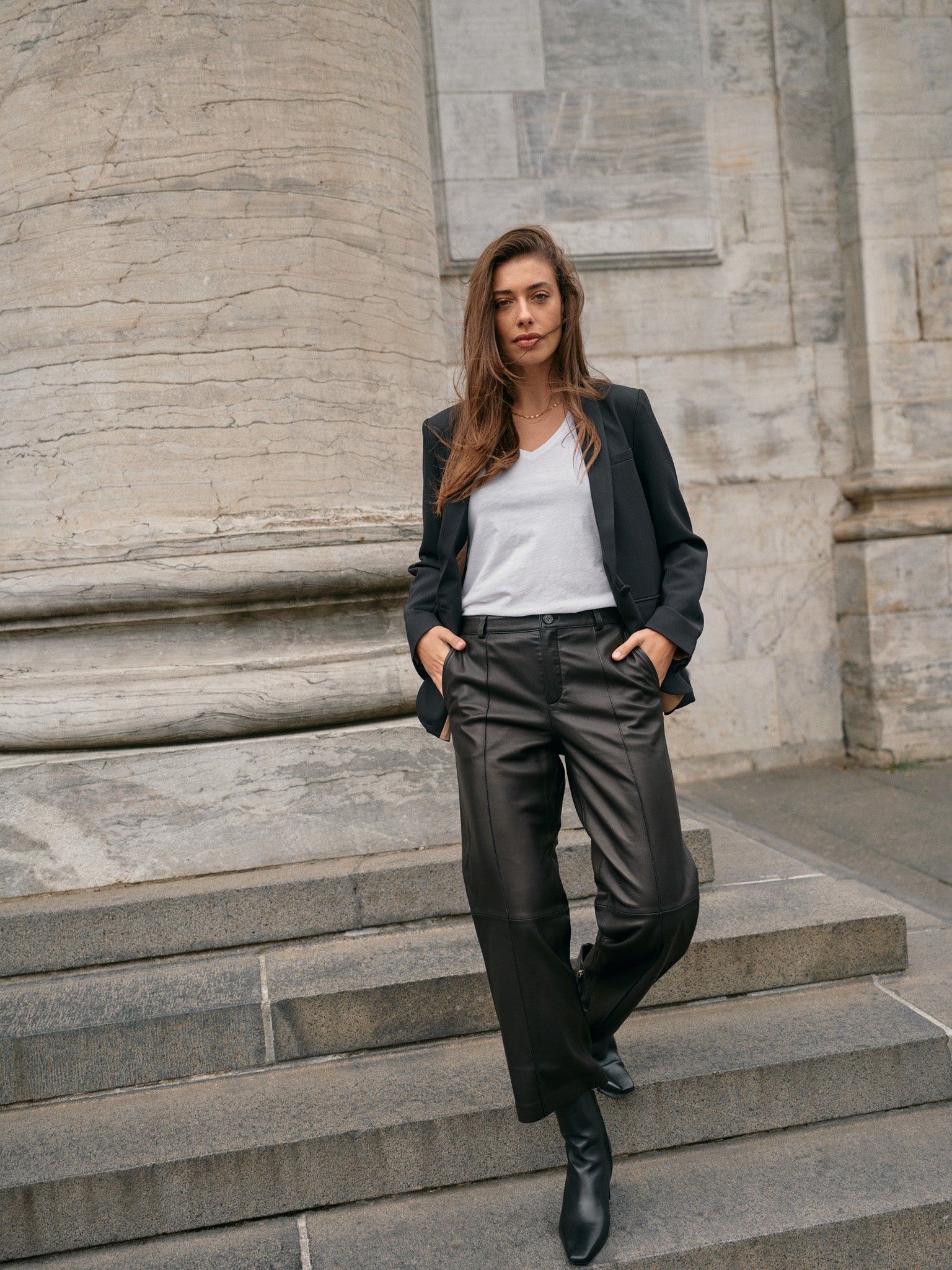 Vores populære Como-pasform har fået en opgradering denne sæson. Disse bukser er skåret i en cool culotte fit med høj talje og er fremstillet i smørblødt læder med elegante læg foran. Style dem med en silkeskjorte for at skabe balance til det rå læder, eller vælg en bomuldsskjorte og sneakers for et afslappet, men skarpt look til kontoret.