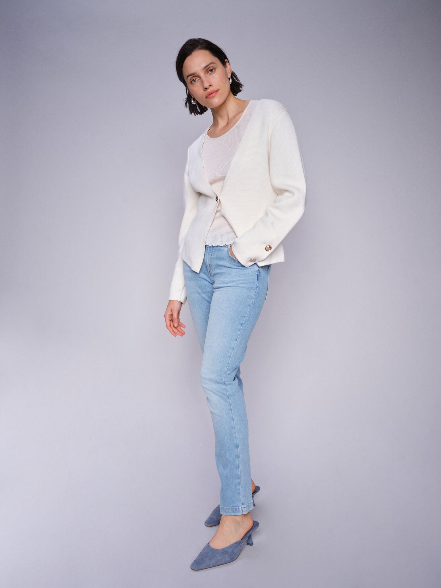 Vores Eric Jeans er designet i et slim fit, hvor bukserne har en slank pasform med et tætsiddende fit fra hofte til ankel, dog uden at stramme. Vores Eric Jeans sidder dermed tæt, men har mere plads omkring benene end en skinny fit.