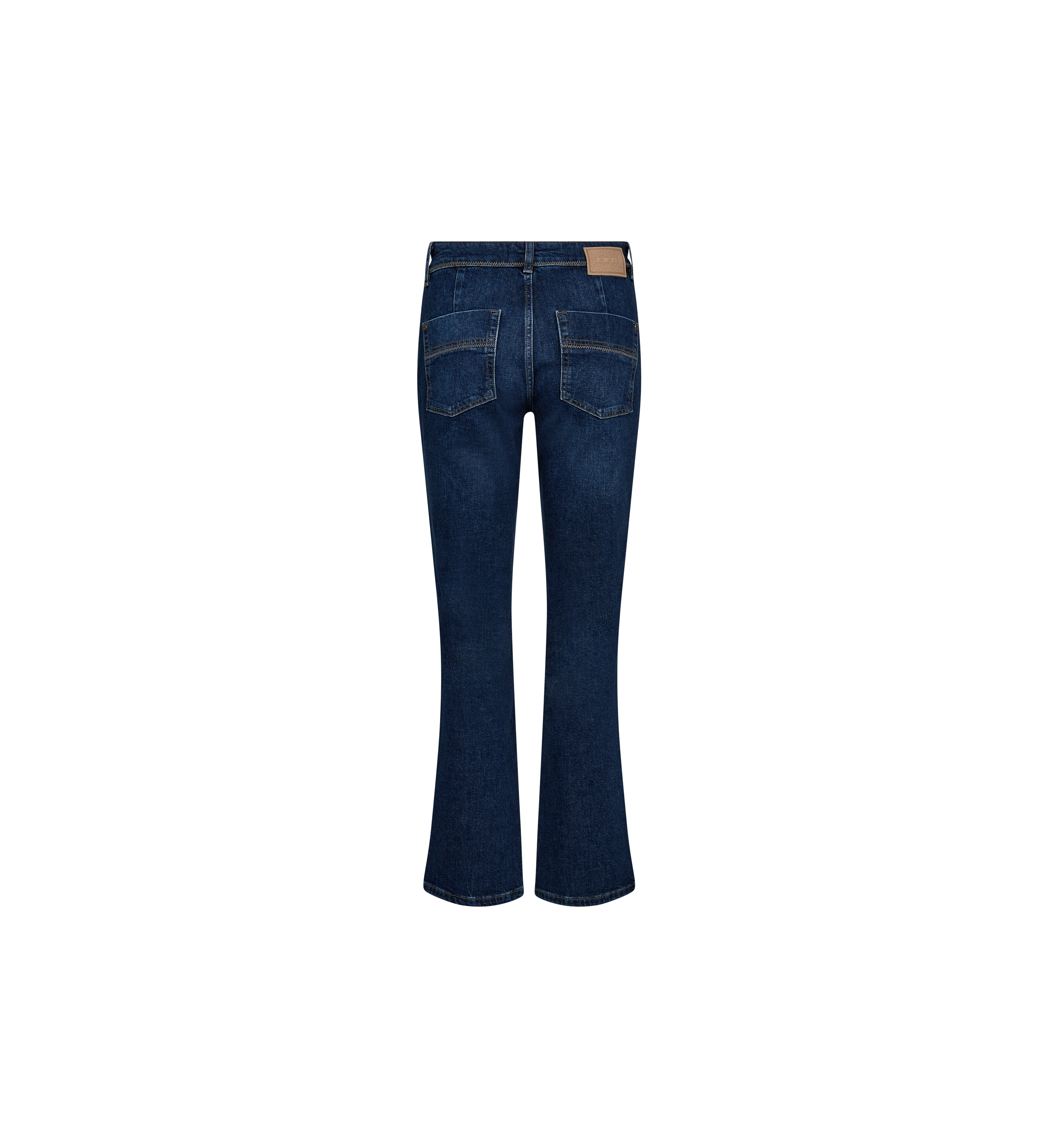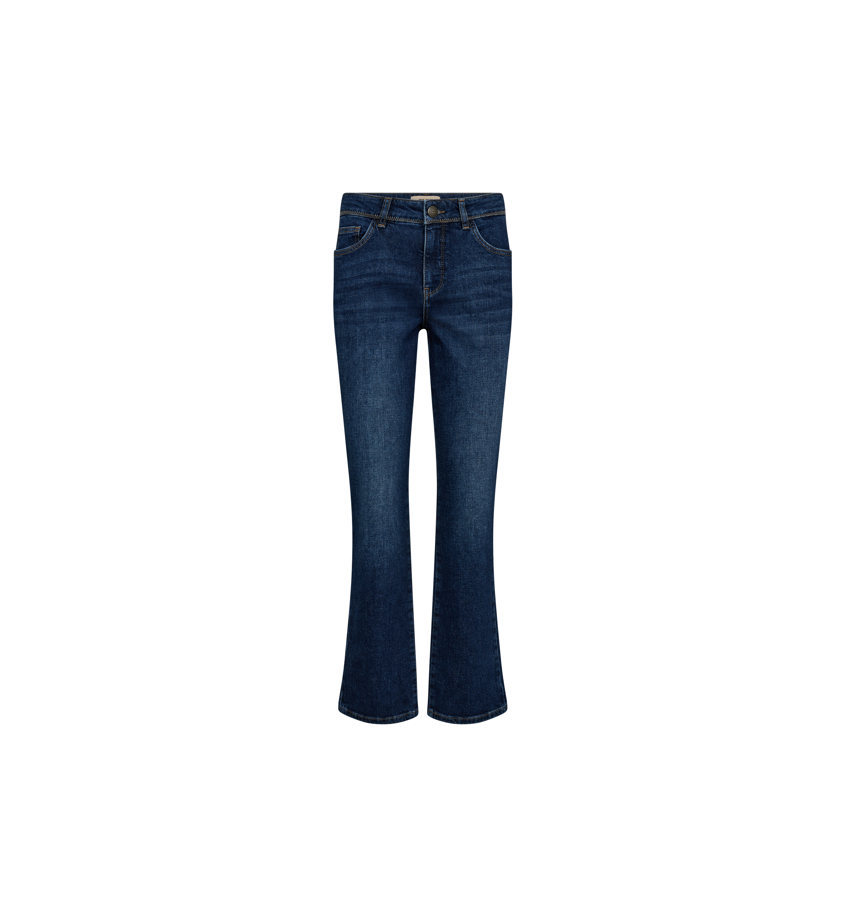 Disse jeans i en mid-waist-pasform har en flatterende flared silhuet og ankellængde, som skaber et tidløst, men moderne udtryk. De er lavet i en blød bomuldsblanding med en smule stræk for maksimal komfort og fleksibilitet til hverdagsbrug. Style dem med en indstukket bluse eller en cosy strik for et alsidigt look.