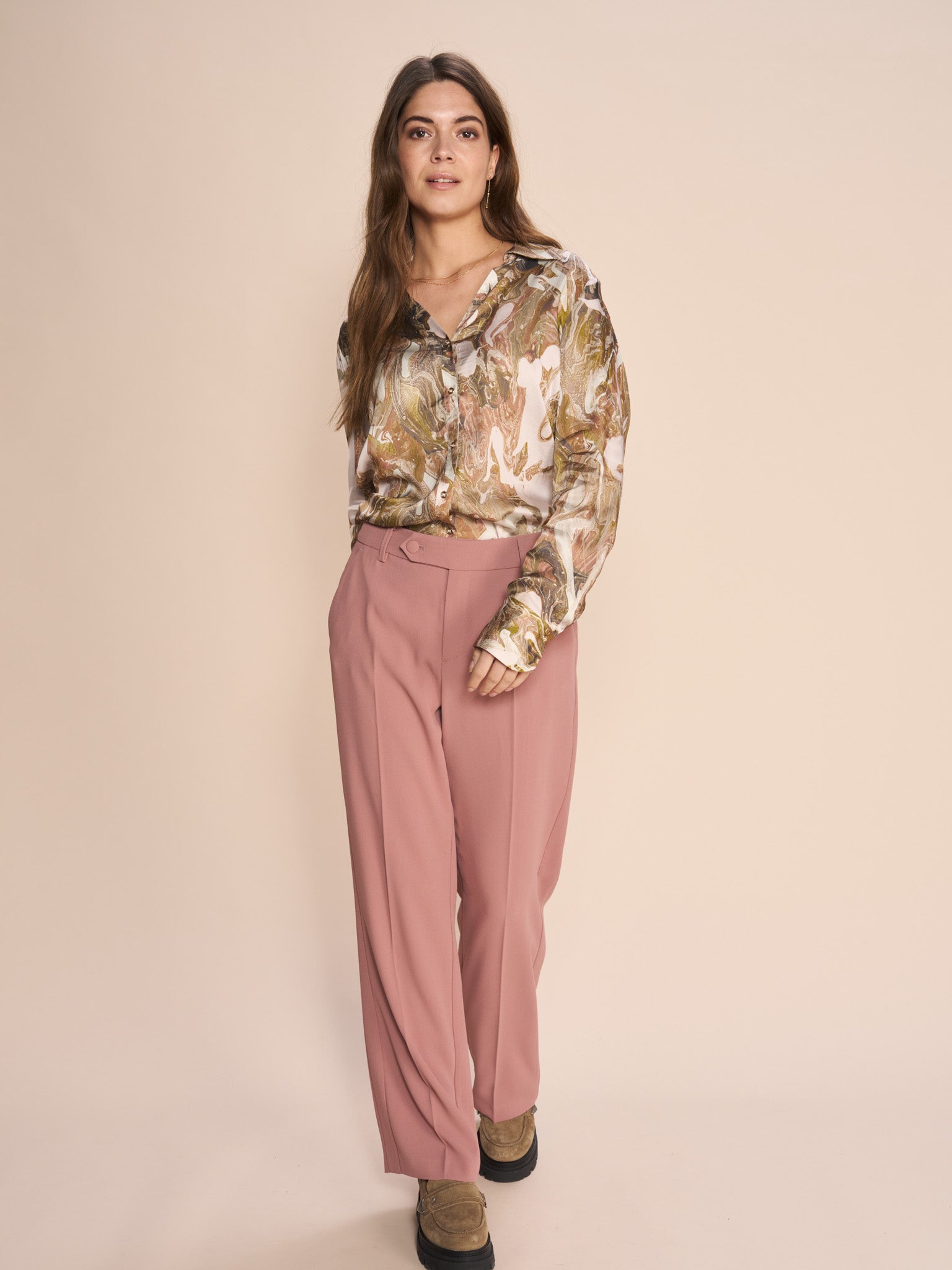 Disse skønne bukser er både stilfulde og utrolig behagelige at have på. Designet i en regulær pasform og med middel talje. Med tone-in-tone-detaljer, sidelommer og skjult lynlåslukning som finish. Pressefolderne giver dem et ekstra elegant touch. Brug dem til en cool T-shirt eller en oversize skjorte.