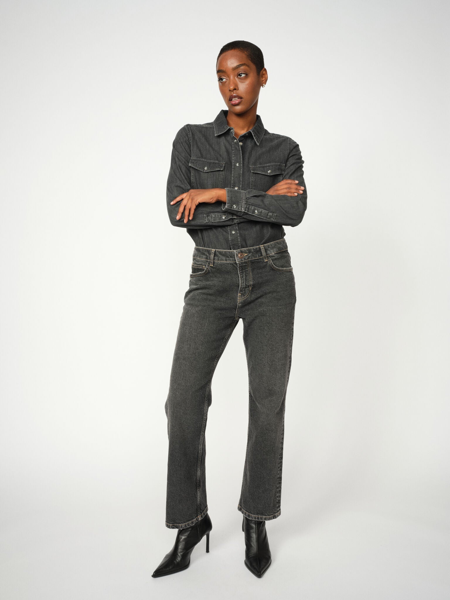 Disse stilfulde jeans er skabt i en klassisk straight fit med en flatterende mid-rise, hvilket sikrer både komfort og en sofistikeret udstråling hele dagen. Designet med praktiske lommer og færdiggjort med et elegant lædermærke bagpå, kombinerer de en afslappet og raffineret stil. Style dem med en skarp skjorte eller en afslappet T-shirt for et alsidigt, moderne outfit.