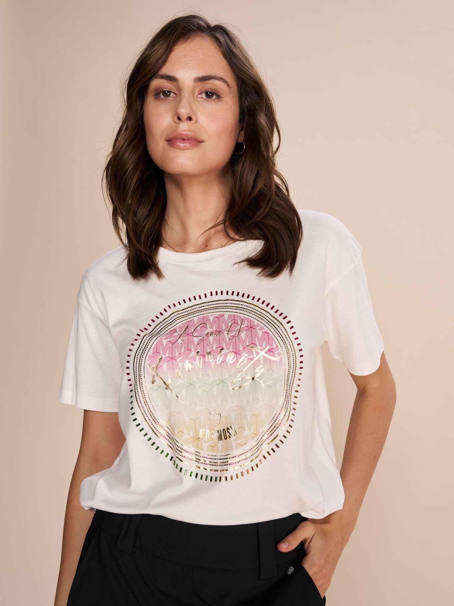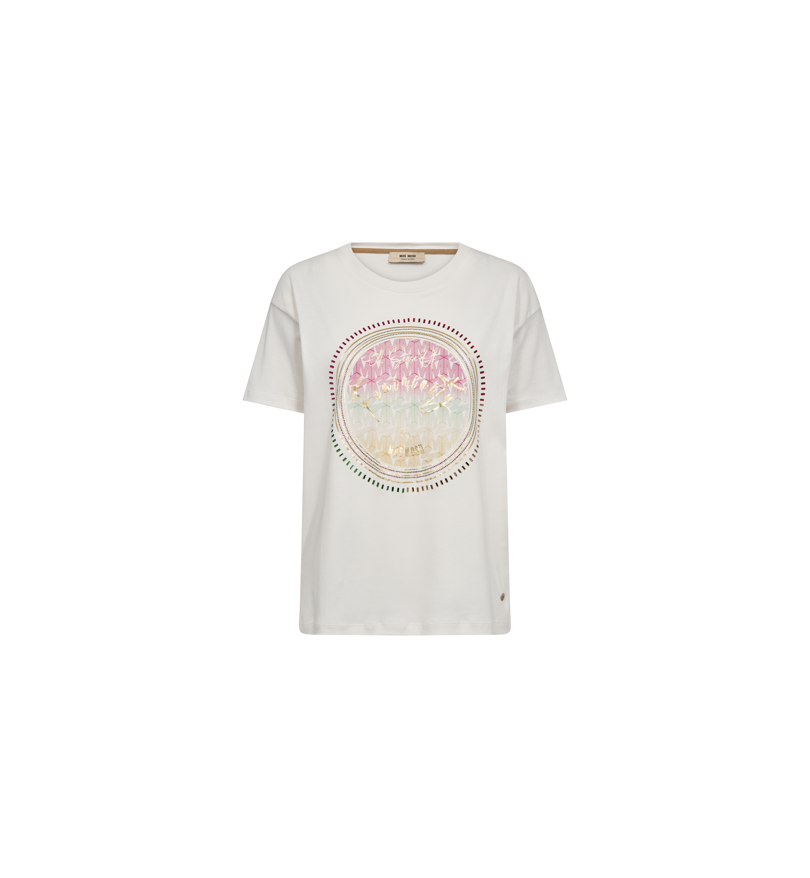 Giv dit outfit et pift med denne glamourøse T-shirt. Den er designet i en regulær silhuet og med et flot motiv af rhinsten, glimmer og farver. Brug den gerne til et par højtaljede jeans og støvler.