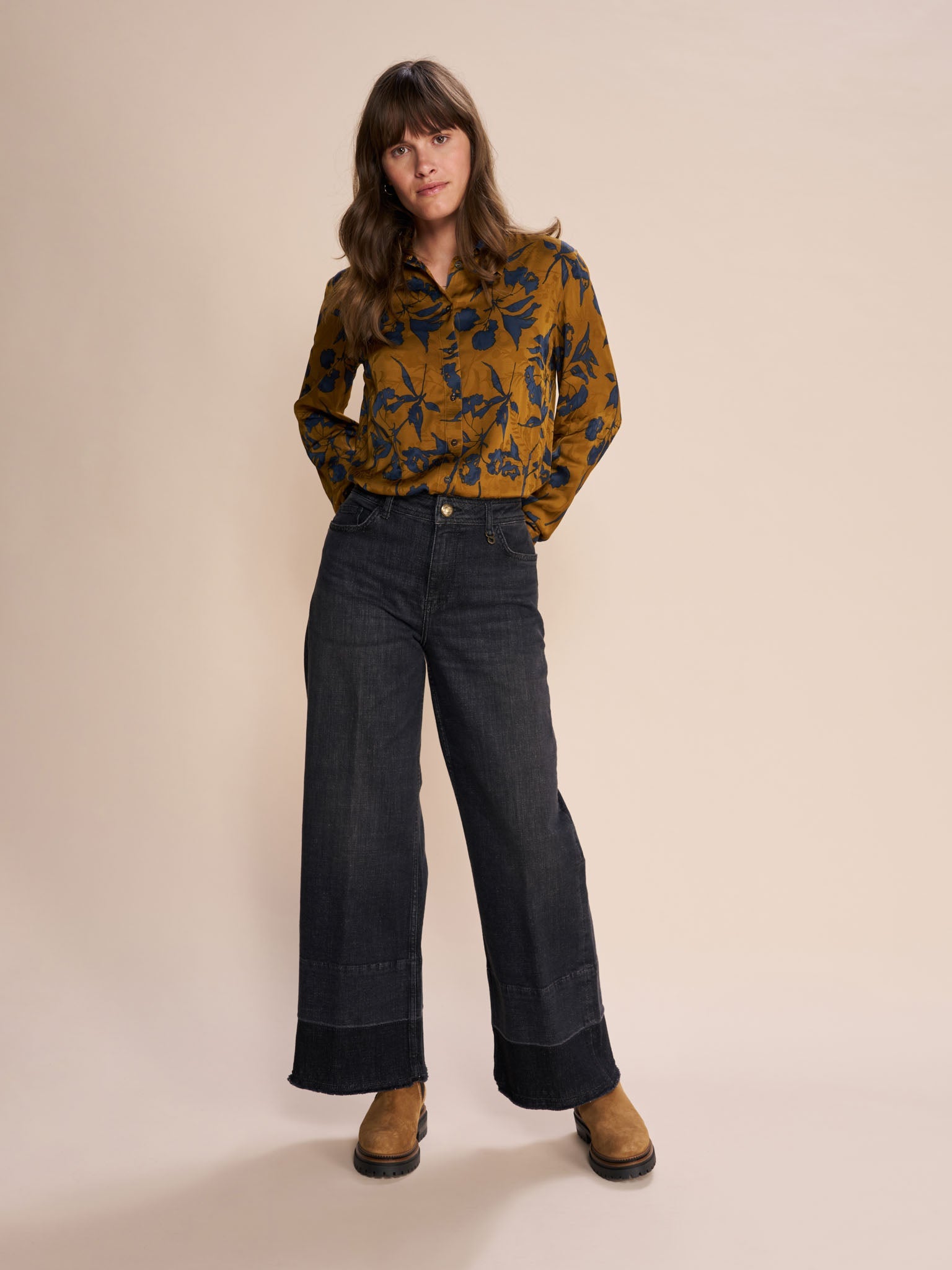Disse cool 70'er-inspirerede sorte jeans er et musthave i din garderobe! De er fremstillet i en bomuldsblanding og designet i en cool wide-leg-pasform med høj talje. Med Love-motiv ved højre baglomme, tone-in-tone-syninger og en mørkere farve ved den rå kant. Vi ville style dem med en go-to T-shirt og en blazer udover eller med en klassisk skjorte.