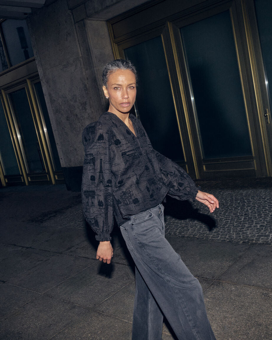 Disse high-waist jeans er skåret i en flatterende wide-leg silhuet og fuldendt med det klassiske femlommers-design. Den dybe, mørke denim brydes af markante kontrastsyninger, der tilfører et cool og afslappet præg. Brug dem med en skjorte stukket ned i linningen og chunky støvler for et stilrent og moderne udtryk.