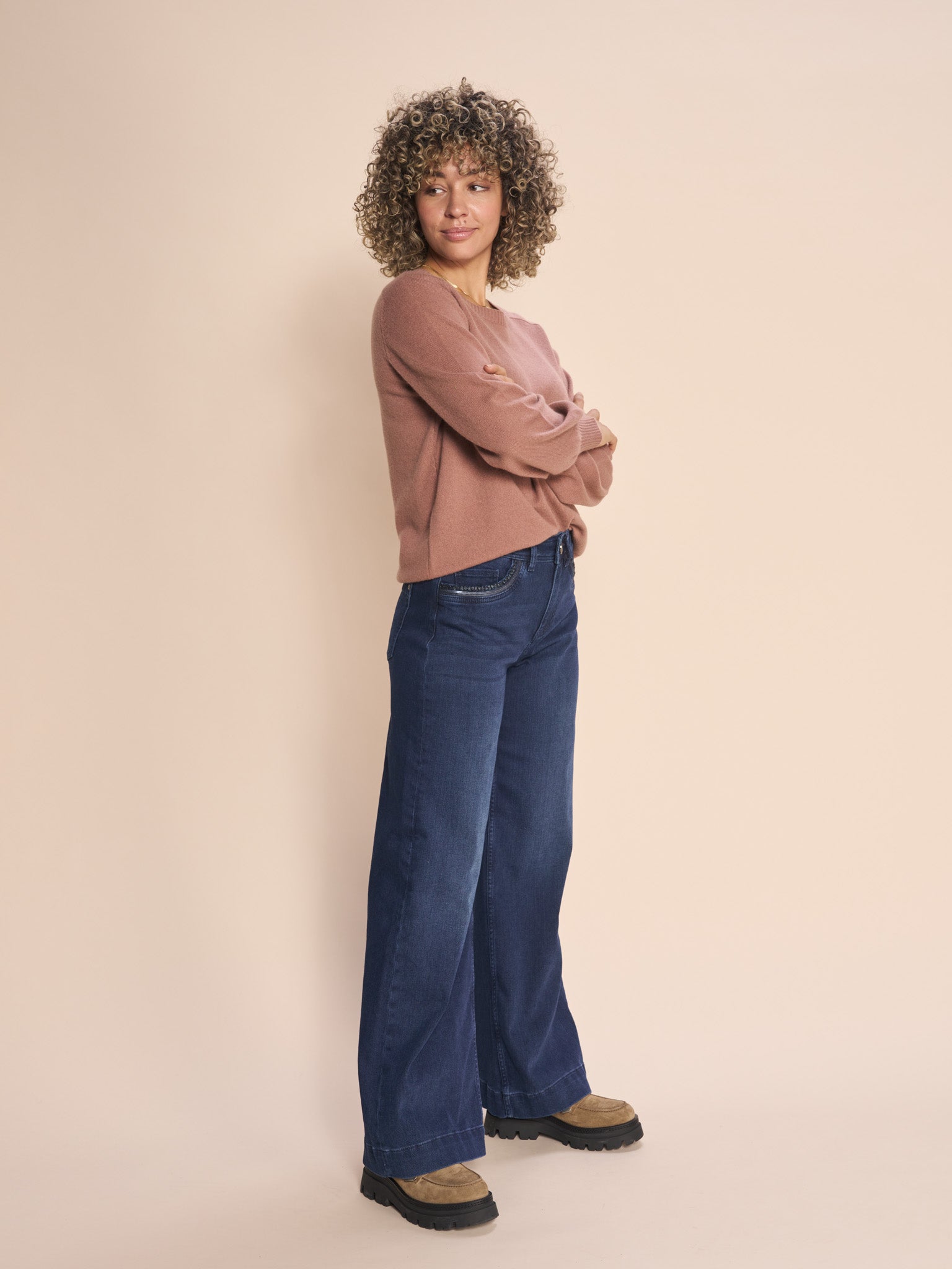 Skønne 70'er-inspirerede jeans! Designet i en trendy wide-leg-pasform med høj talje og fremstillet i en lækker bomuldsblanding med strikket effekt. Med glamourøse detaljer ved lommerne som finish. Ser fantastiske ud med en go-to T-shirt eller en klassisk skjorte.