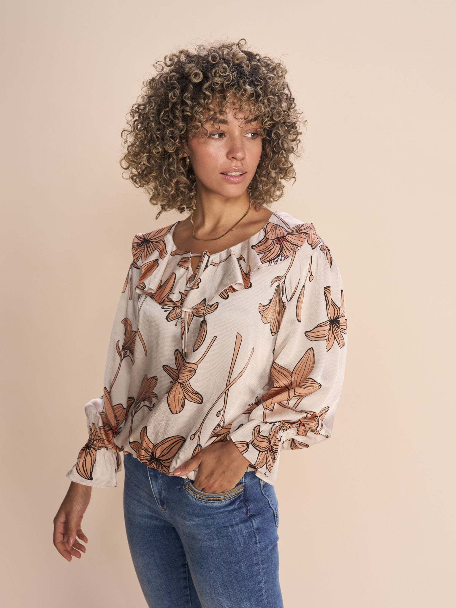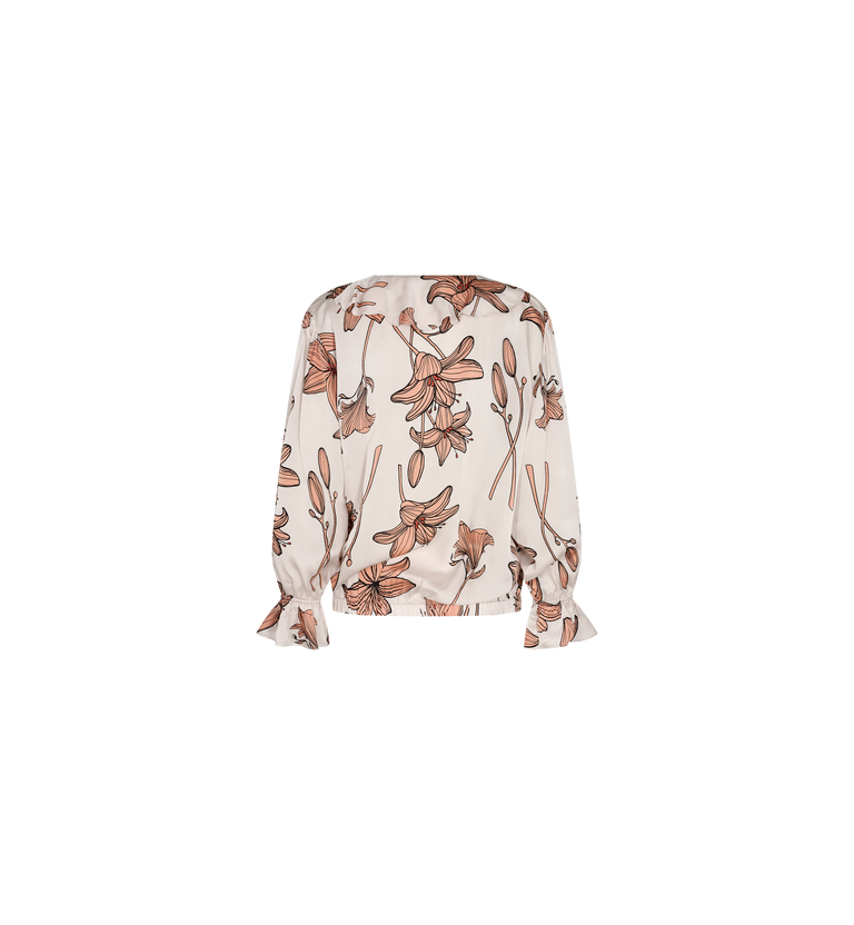 Smuk bluse designet i en regulær silhuet med et flot blomsterprint. Fremstillet i viskose med plisseringer, flæser ved halsen, snører, elastisk søm og elastiske manchetter som finish. Style den med et par tailored bukser eller jeans, alt efter lejlighed og behov.