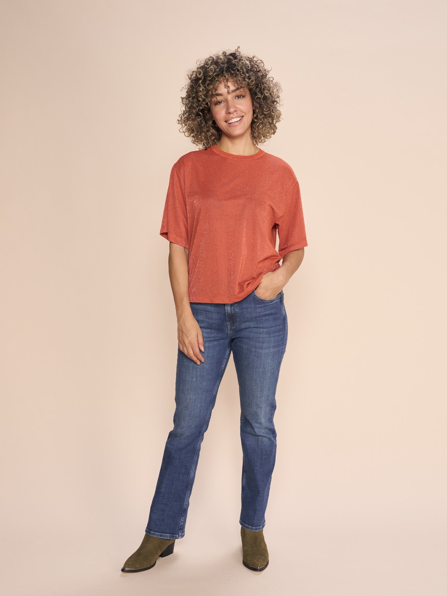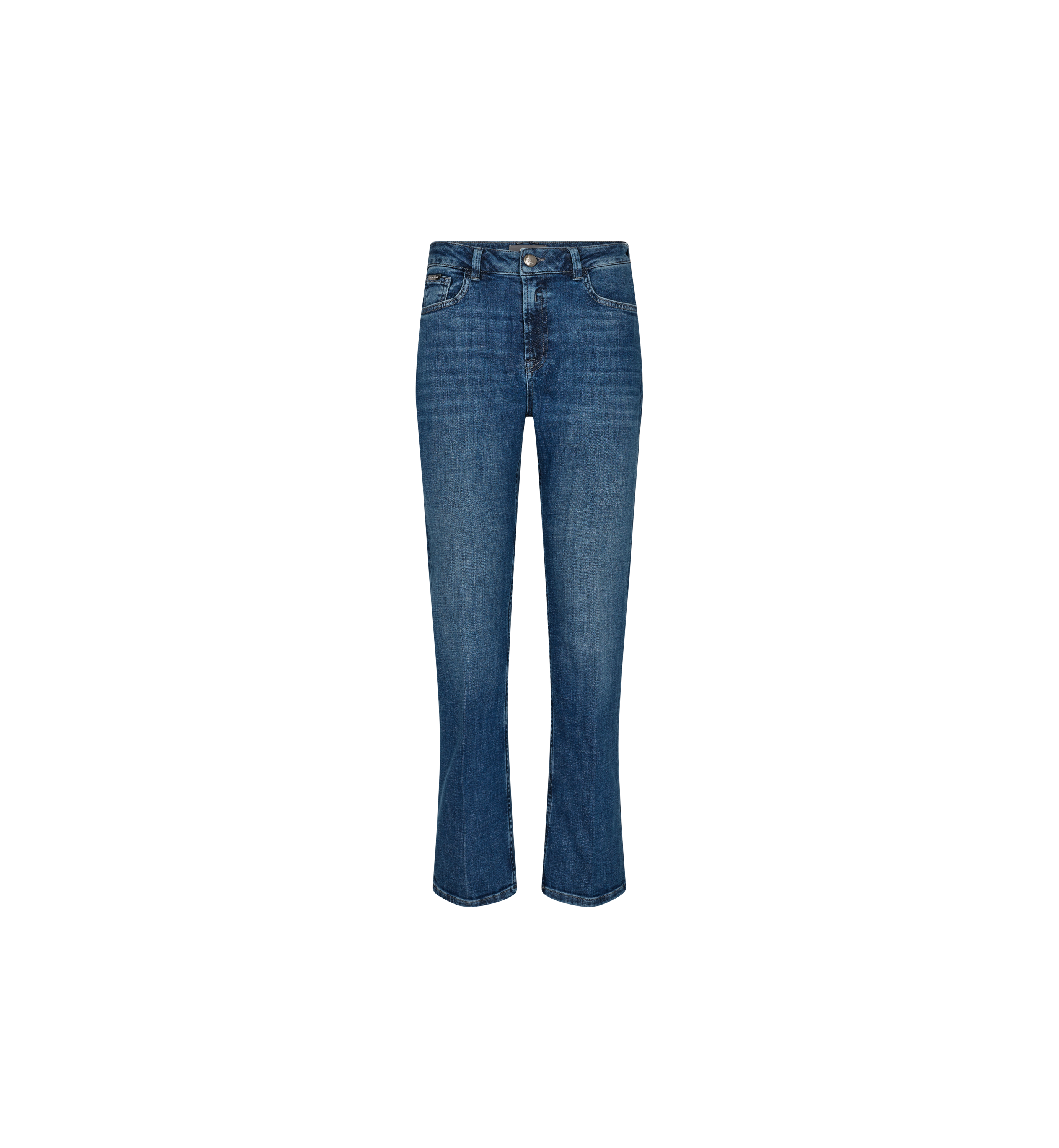 Giv din denimgarderobe et pift med disse cool jeans. Inspireret af de skønne 70'ere og designet i en flatterende flared pasform med middel/høj talje og ankellængde. Med ekstra vidde i buksekanten, som skaber en fin kontrast til silhuetten foroven. Med smukt blomstret lommefor som finish. Kan med fordel bruges til en skjorte eller strik.