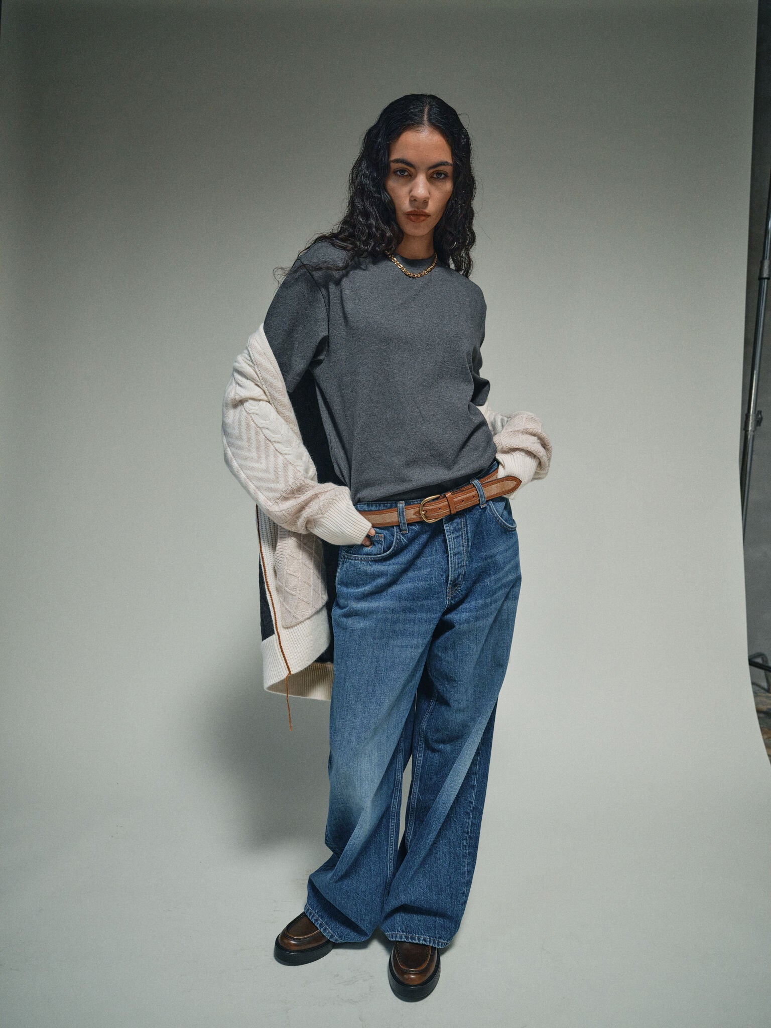 Draperet denim med brede ben og lav talje – et laid-back fit, der hænger cool på hoften. Den drejede sidesøm giver et legende element og bryder det klassiske udtryk. Casual jeans med attitude.