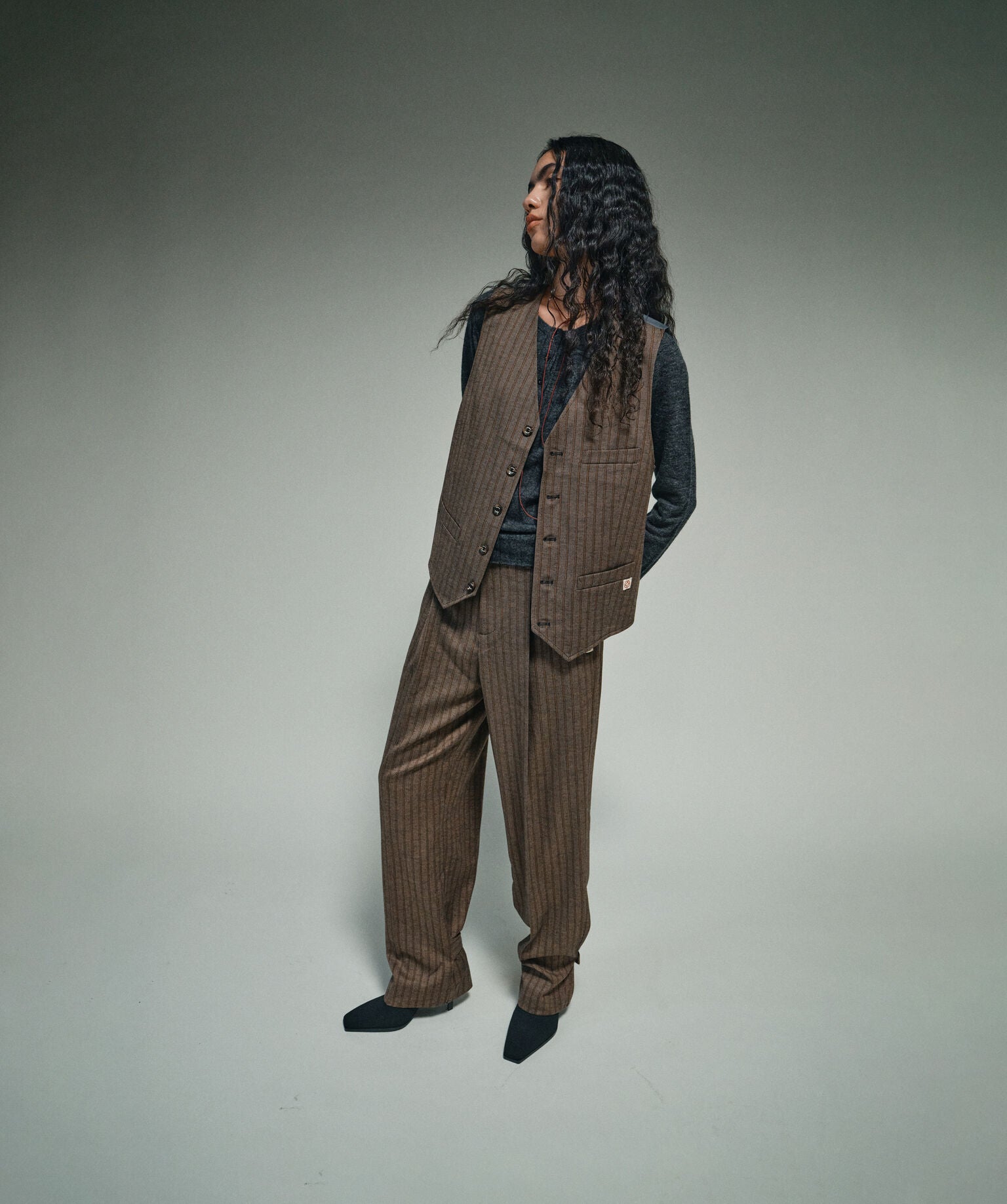 Bukser med boyfriend fit i blød, drapy herringbone med lav talje og ankellængde. Buksernes sømme og afslappet fald giver et casual modspil til det klassiske snit.