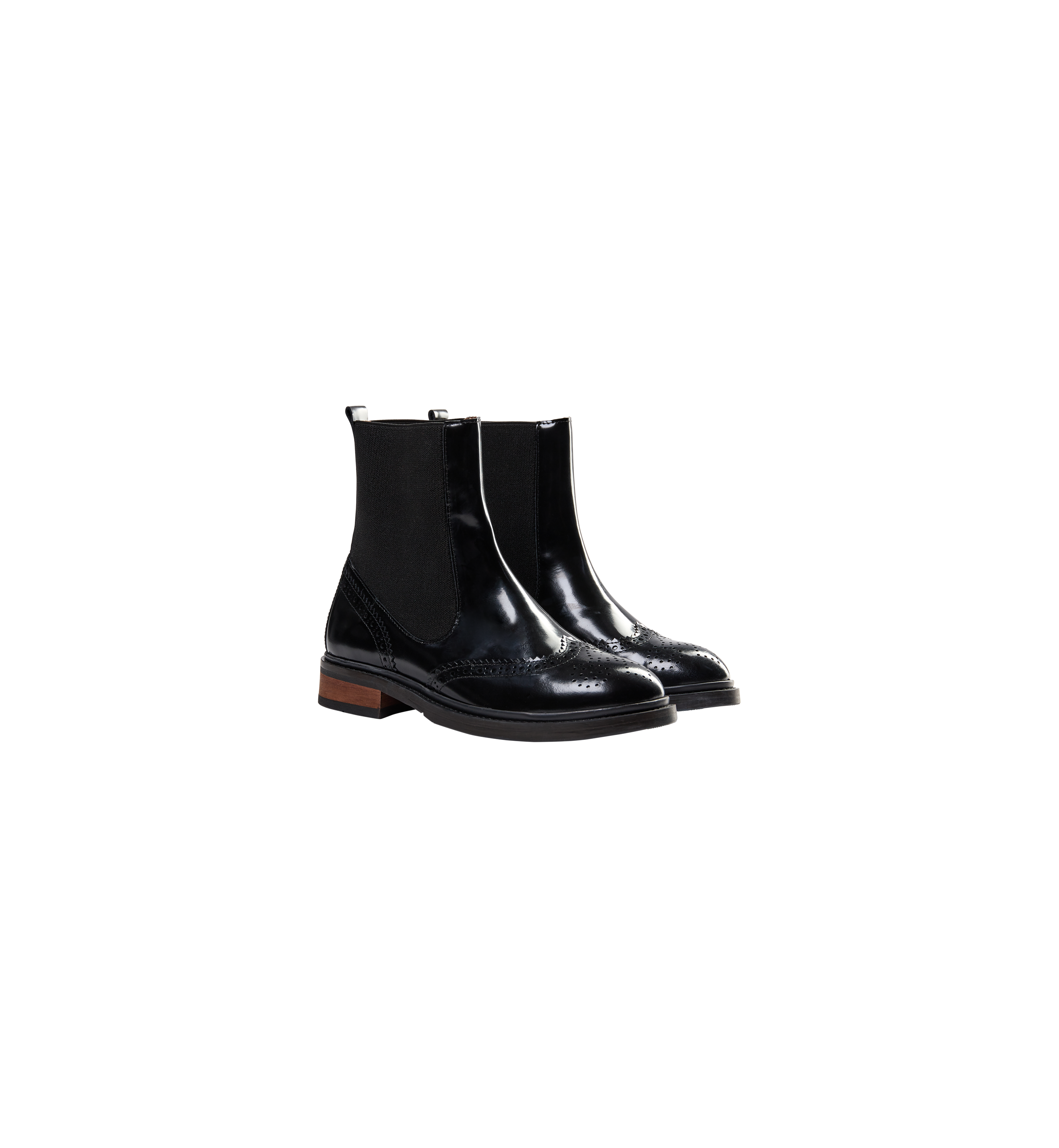 Giv din fodtøjsgarderobe et pift med disse flotte støvler. Fremstillet i italiensk læder og designet i en klassisk pasform. Med brogue-detaljer foran og sidepaneler med rib som finish. Brug dem gerne til blå tailoring eller mørk denim.