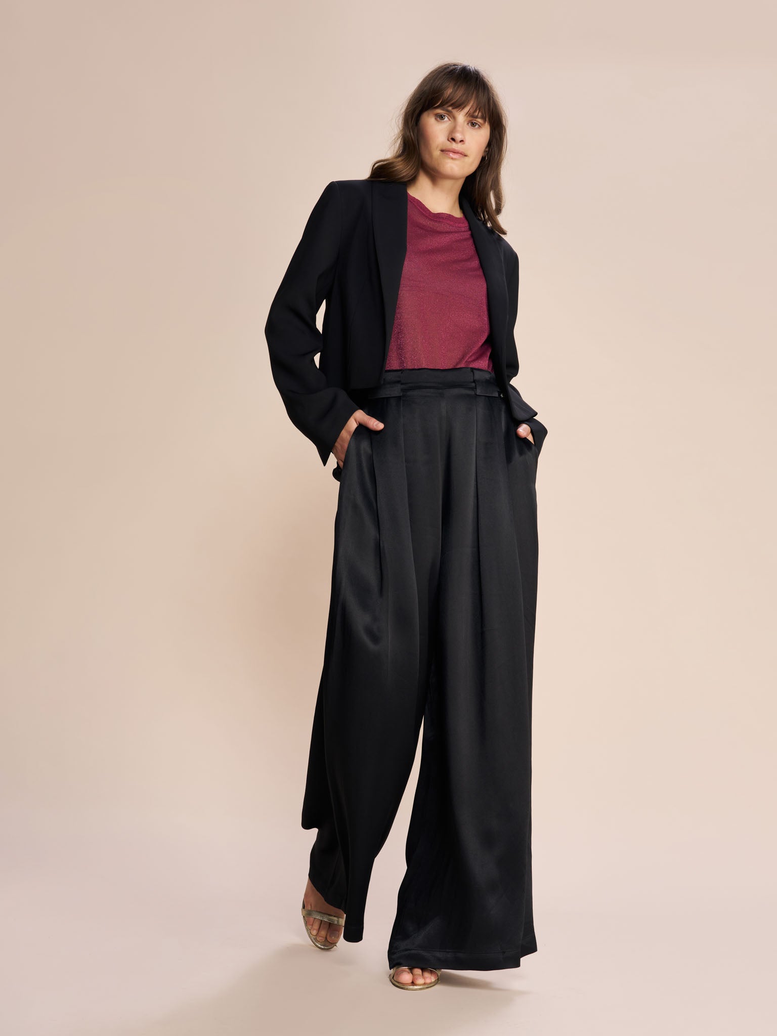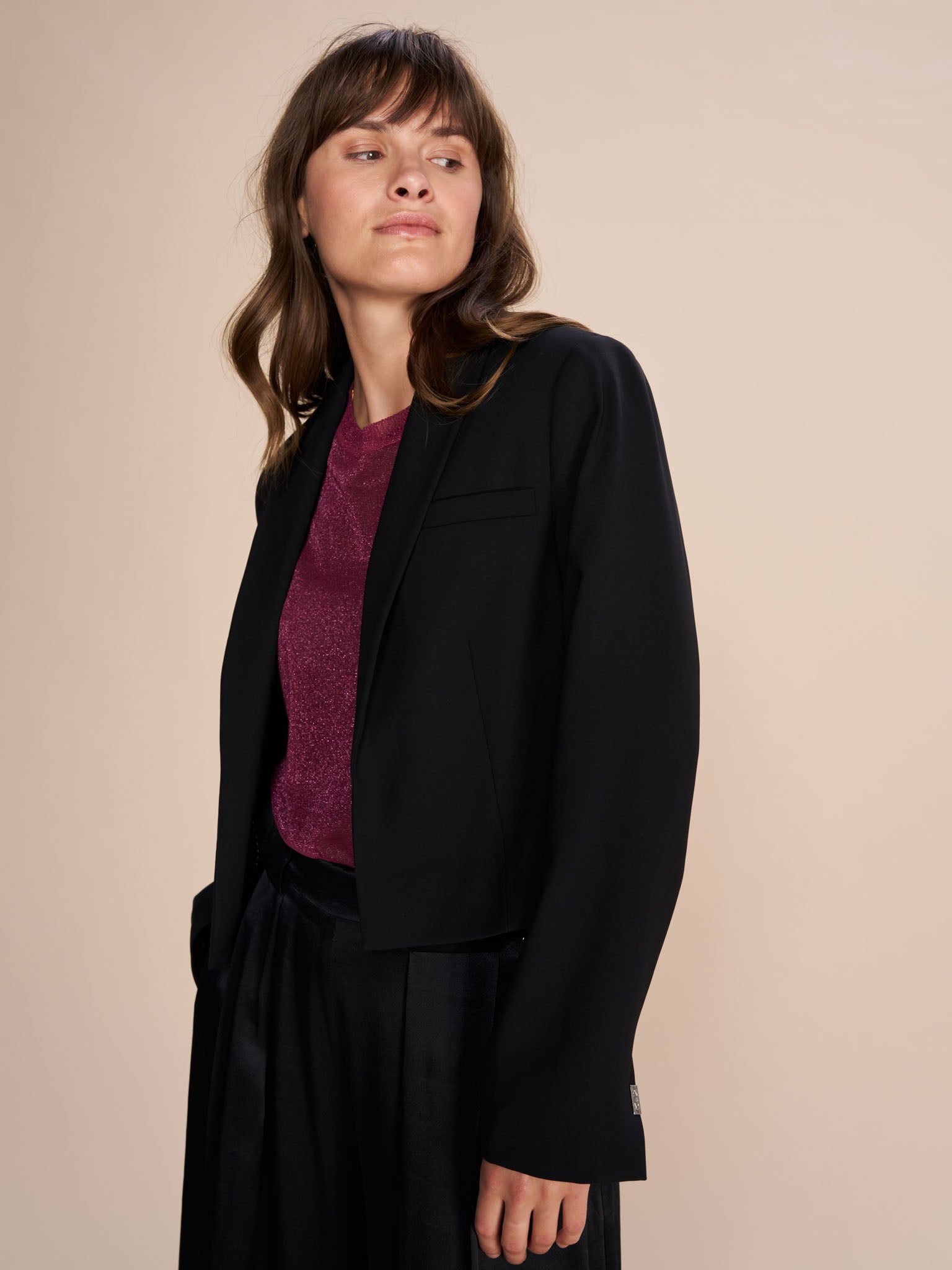 Mangler du en kort blazer? Så er denne cool blazer lige noget for dig. Den er designet i en løs silhuet med fine slidser ved manchetterne og en lomme på venstre bryst som finish. Brug den til et par jeans for et cool look på jobbet eller til et par tailored bukser i en wide-leg-pasform for en mere elegant stil.
