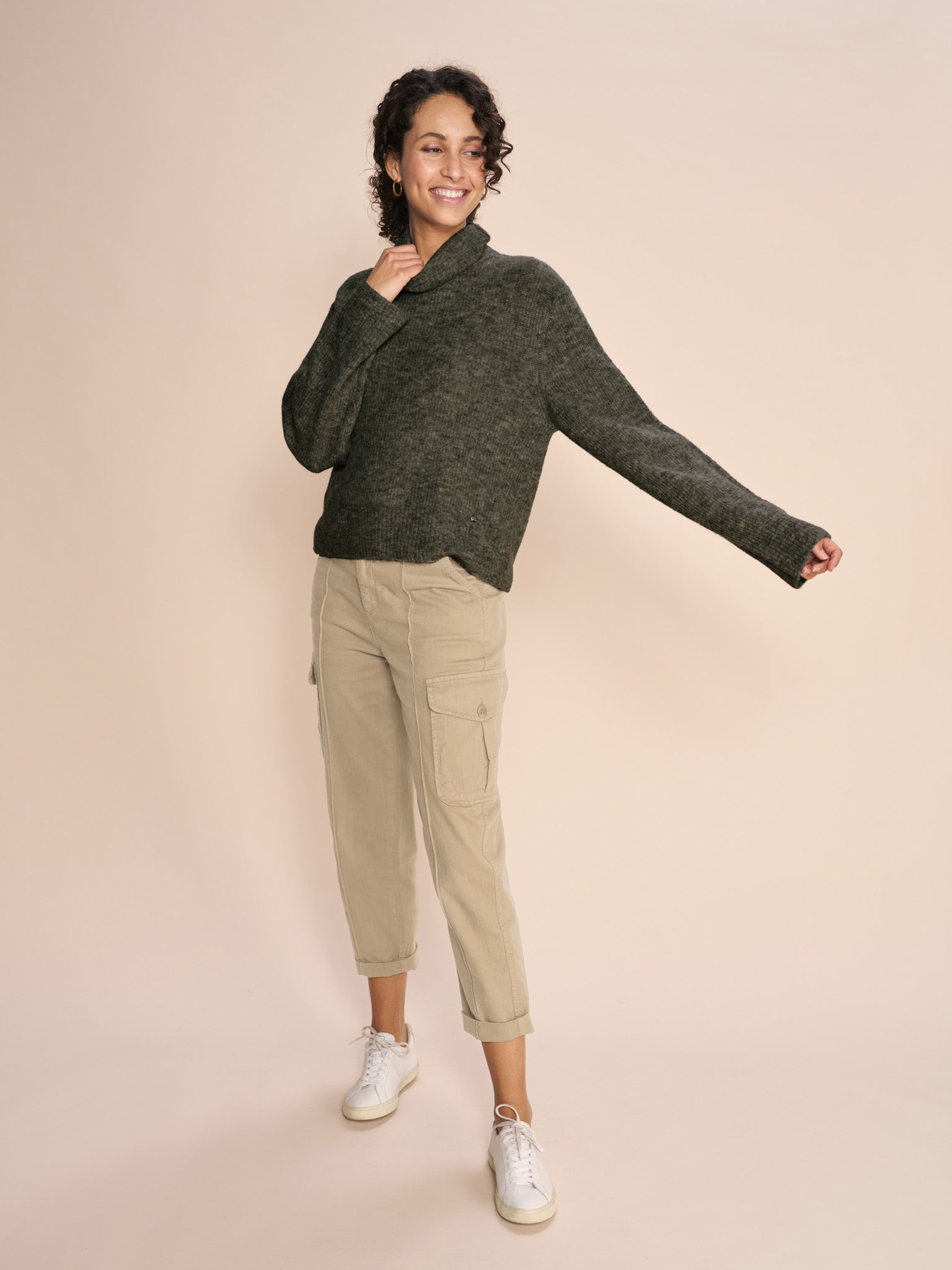 Super cool cargobukser i sildebensmønster! Designet i en trendy mom-pasform med høj talje. Med klaplommer og syningsdetaljer som finish. Fremstillet i blød bomuld med masser af stræk, så du sagtens kan have dem på hele dagen. Brug dem til en smart go-to T-shirt eller en klassisk oversize skjorte.