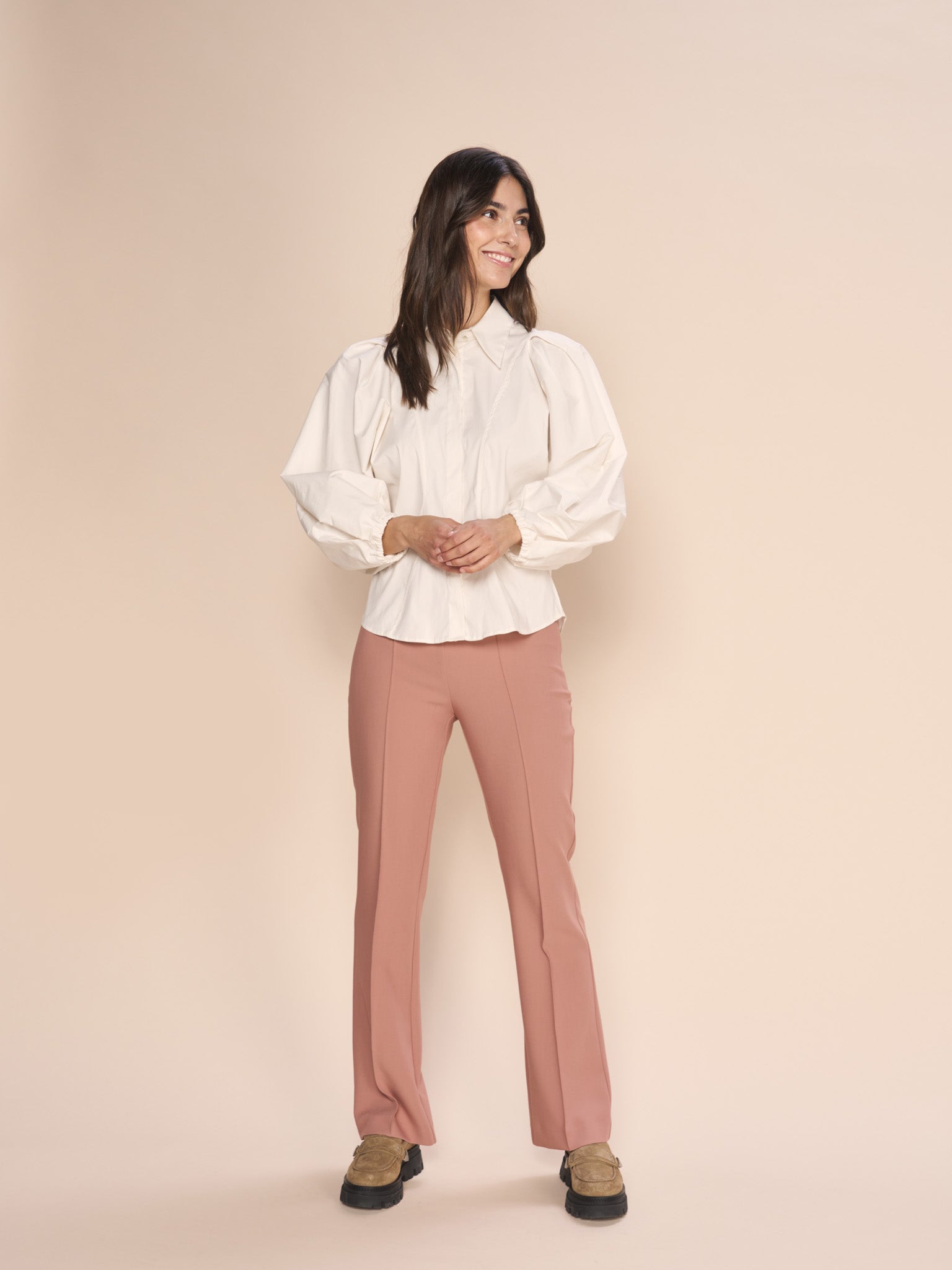 Elegante tailored bukser med et moderne tvist. Designet i en trendy flared pasform med middel talje og fremstillet i et lækkert materiale. Med lynlåslukning i siden, lommer, pressefolder foran og elastisk talje som finish. Kan med fordel styles med en klassisk blazer og en go-to T-shirt for et elegant look på jobbet.