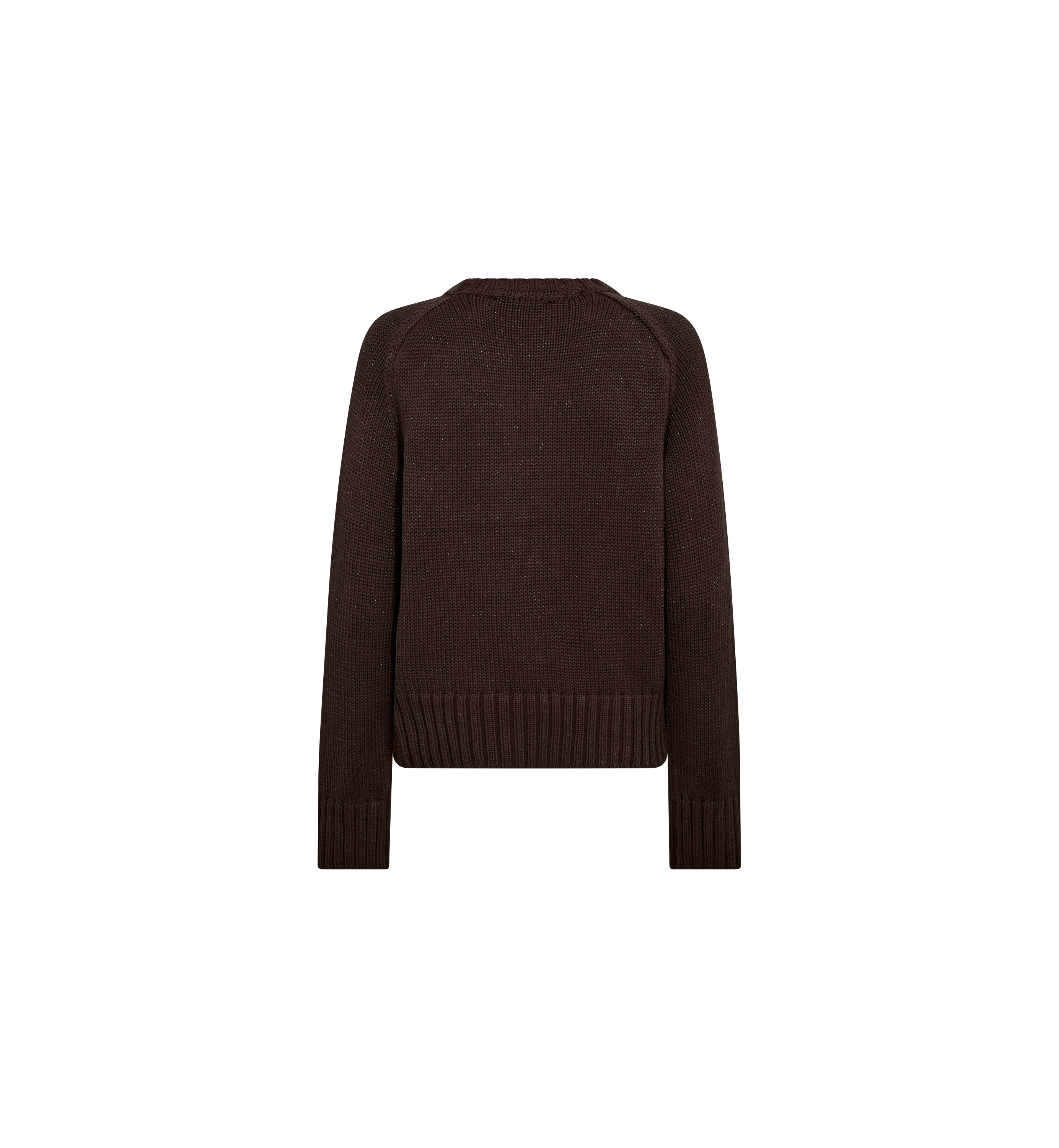 Denne crewneck strik er fremstillet i en blød, chunky struktur med et diskret strejf af glimmer vævet ind i garnet. Modellen har en regular pasform med ribkanter og raglanærmer, hvilket giver både komfort og et sofistikeret udtryk. Style den med et par klassiske bukser eller som lag-på-lag over en skarp skjorte for et afslappet, men stilfuldt look.
