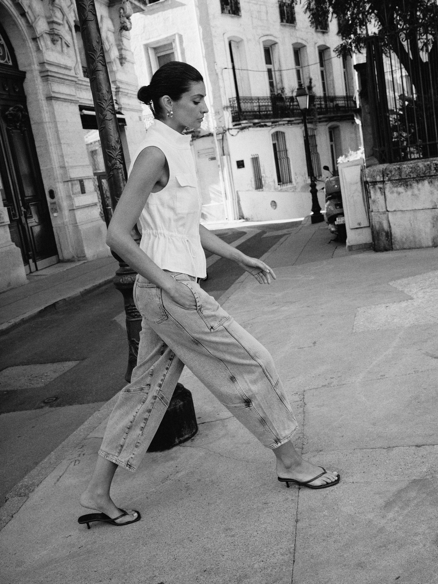 Et moderne statement-piece – disse jeans med barrel-formet pasform har høj talje og markante sømdetaljer, der skaber en skulpturel og nutidig silhuet. De er fremstillet i økologisk bomuld med et strejf af stretch og forener struktur og komfort på ubesværet vis. Perfekte at style med figursyede toppe eller afslappede strik for et chikt off-duty look.