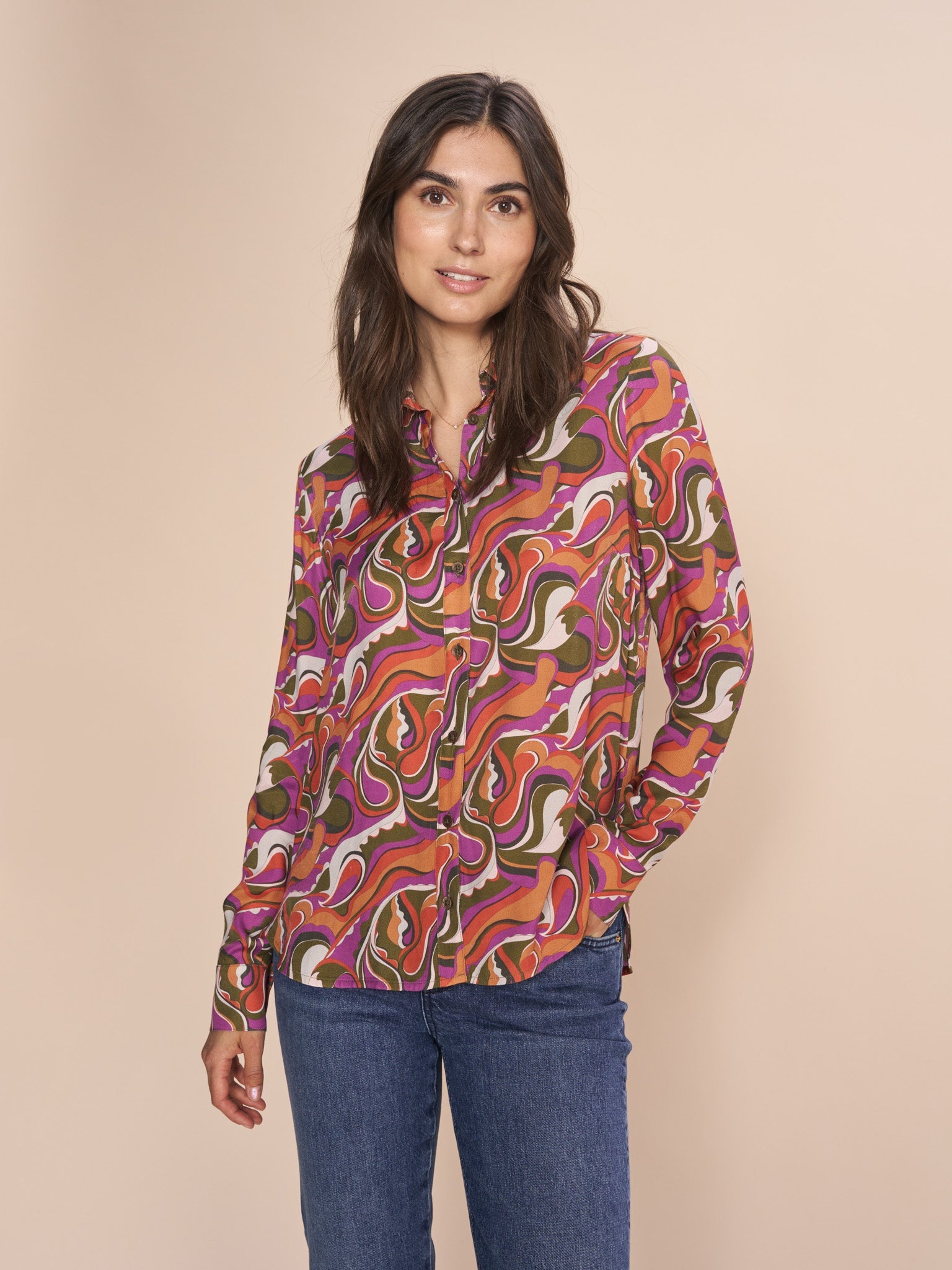 Cool vintage-inspireret skjorte med swirl-print designet i en regulær silhuet og fremstillet af en lækker viskoseblanding. Med en spids 70'er-inspireret krave, knapmanchetter, bløde plisseringer bagpå og knaplukning som finish. Style den gerne med et par jeans eller tailoring, alt efter lejlighed og behov.