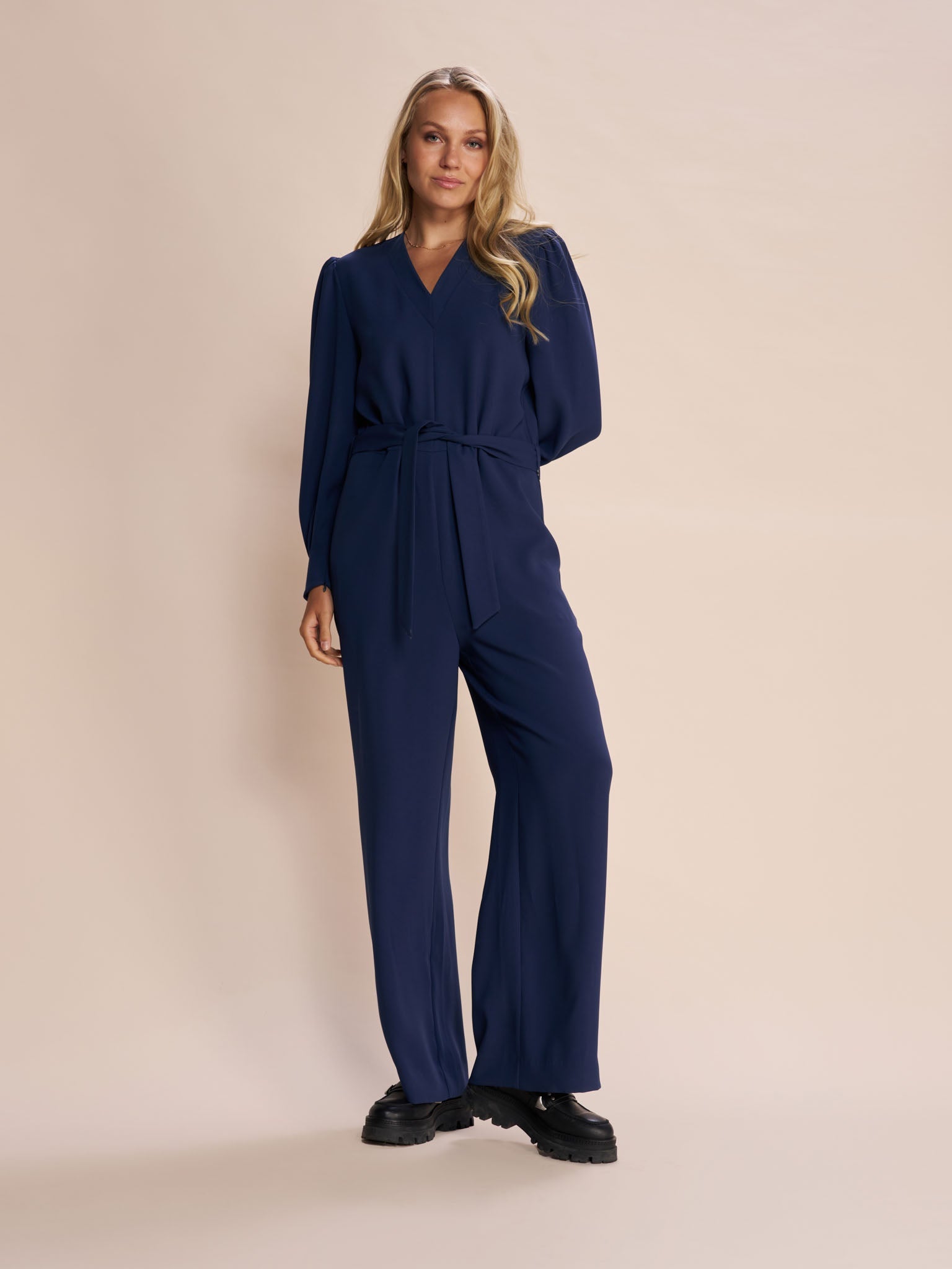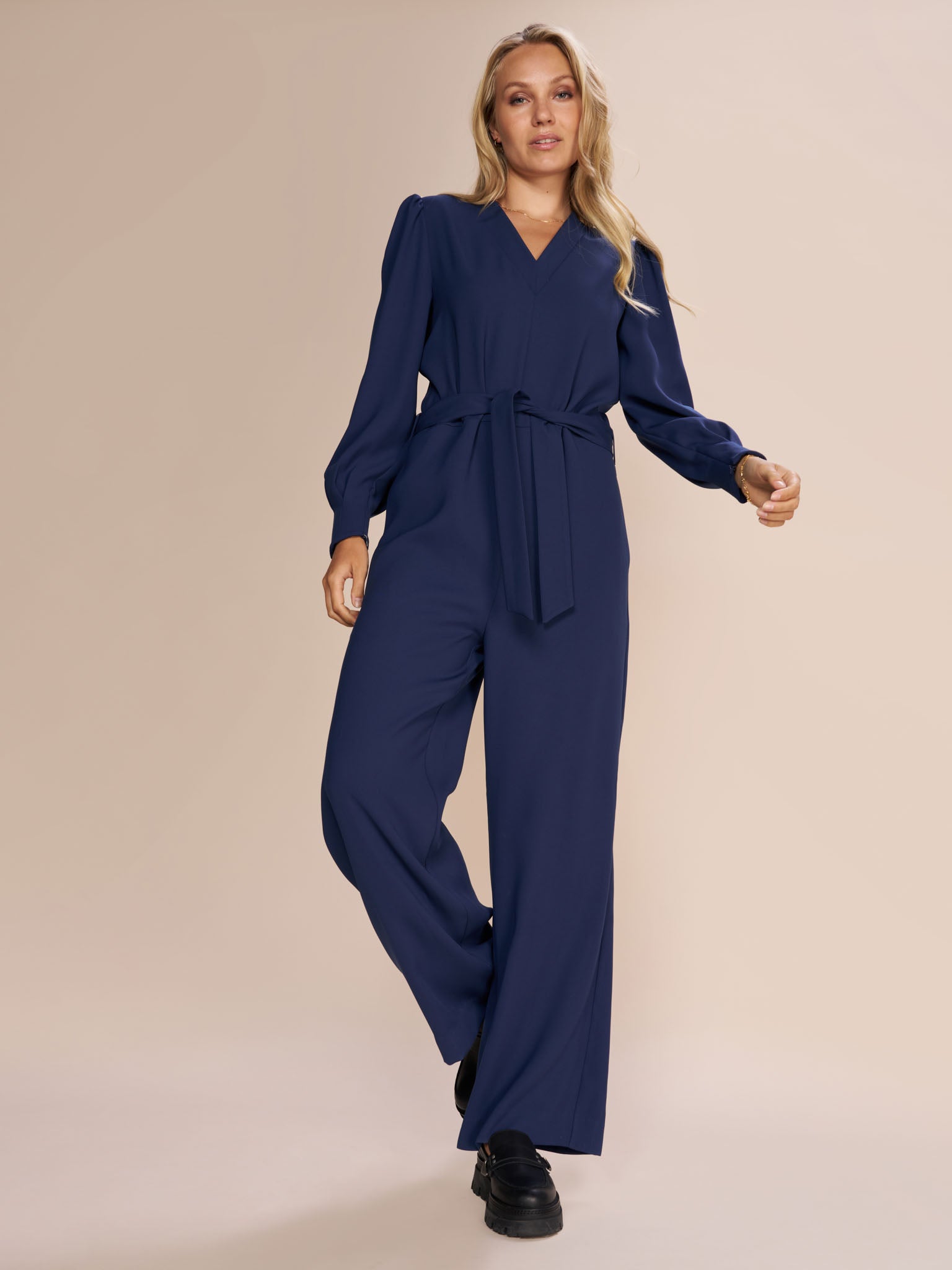 Cool jumpsuit designet i en løs pasform med en trendy V-hals, bløde plisseringer ved ærmerne, baglommer, lynlås bagpå og manchetter som finish. Med matchende bælte, som fremhæver din talje. Brug den gerne til et par stilletter til en aften i byen.