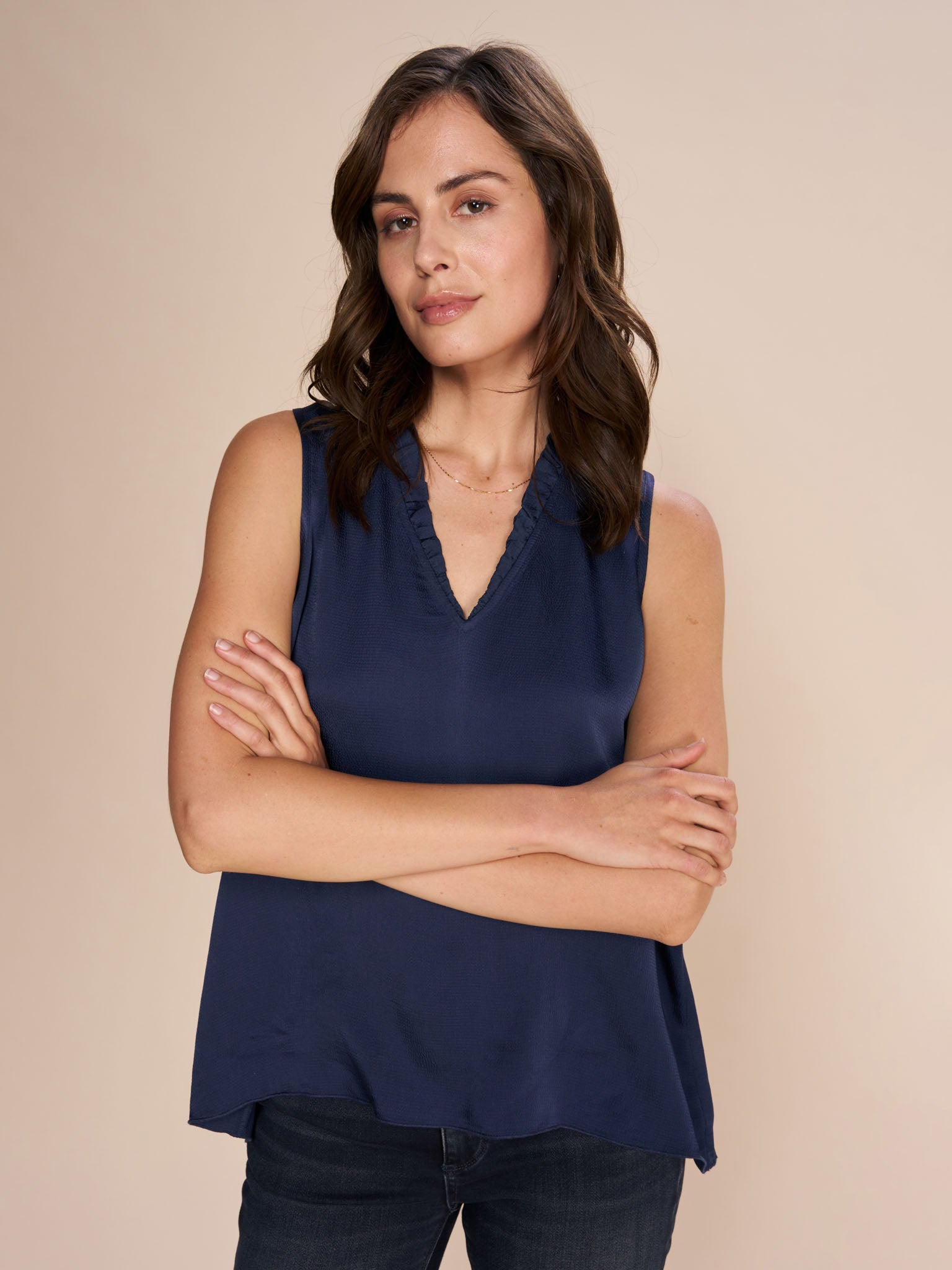 Smart og flatterende top! Fremstillet i en lækker viskosekvalitet og designet i en regulær silhuet. Med flæser i halsudskæringen og V-hals som finish. Style den med et par jeans for et smart look på jobbet eller med tailoring til en hyggelig bytur.