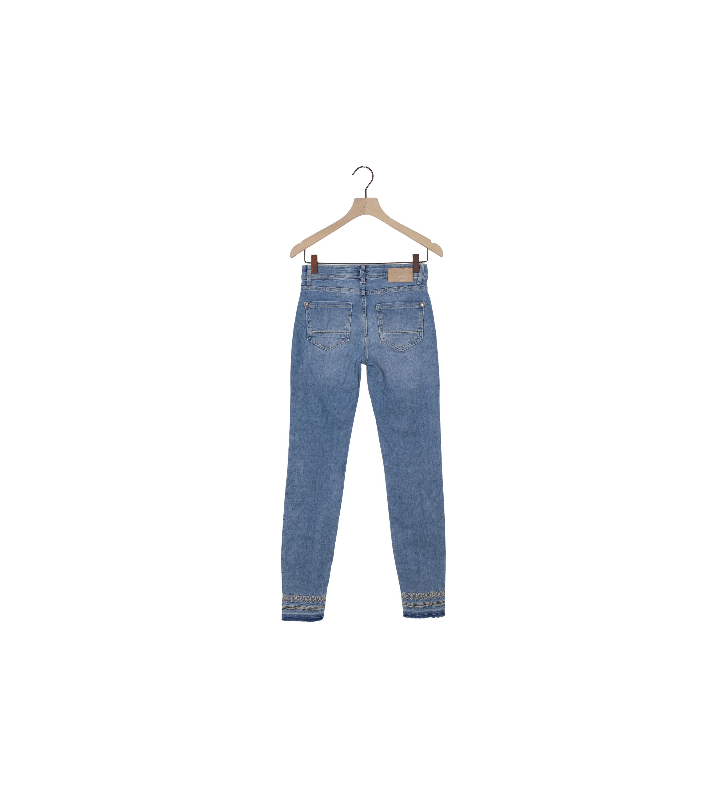 Da vores jeans giver sig med tiden, anbefaler vi, at du går en størrelse ned, når du skal vælge dine nye yndlingsjeans.