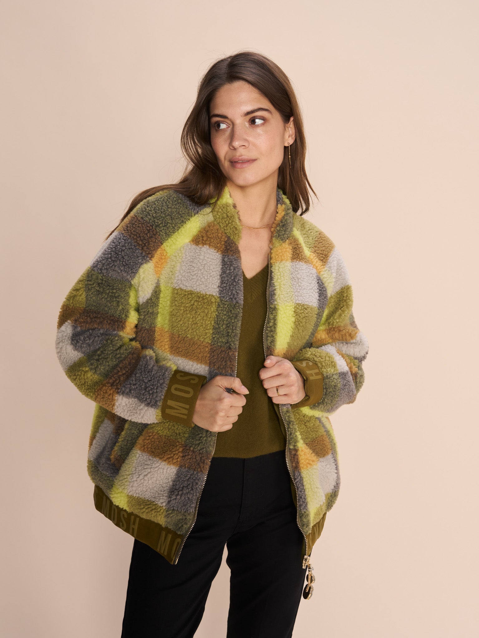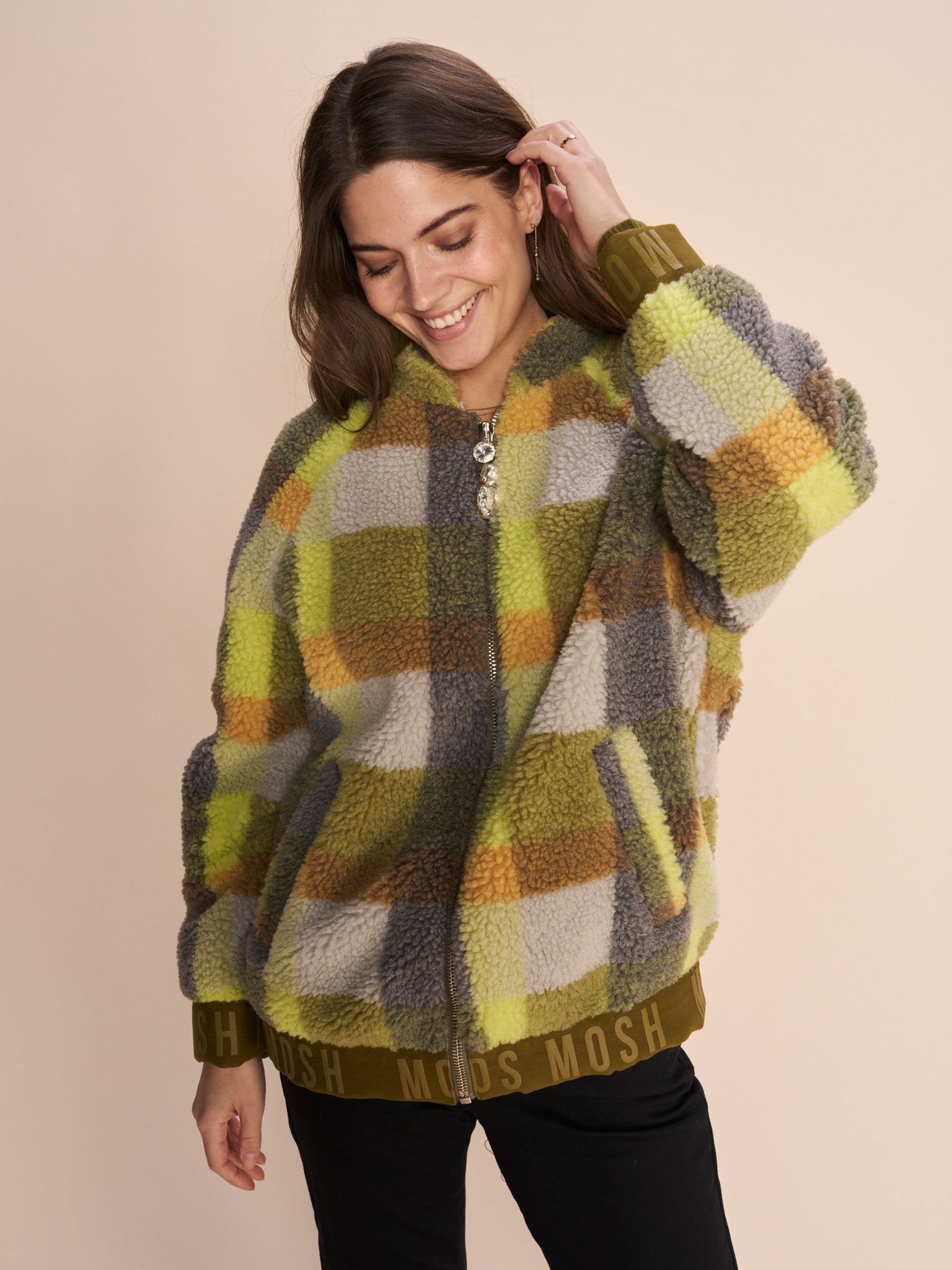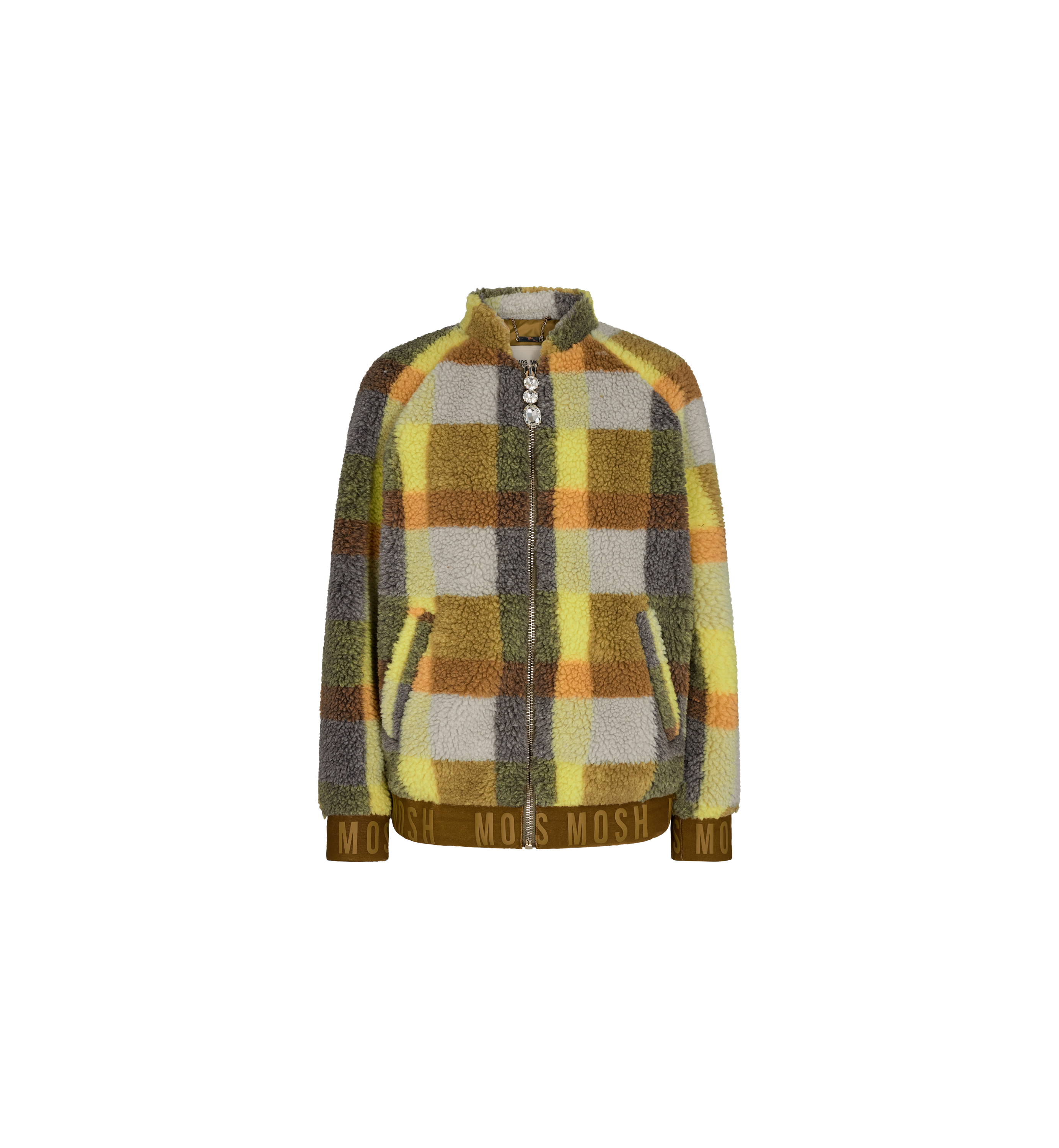 Super cool teddy bomber-jakke! Fremstillet i et utrolig blødt materiale og designet i en løs pasform med lynlåslukning og inderfor. Med elastiske manchetter, kant med MOS MOSH-tekst og lommer som finish. Brug den til en nederdel eller et par jeans – og meget gerne et par af vores chunky støvler for et fuldendt look.